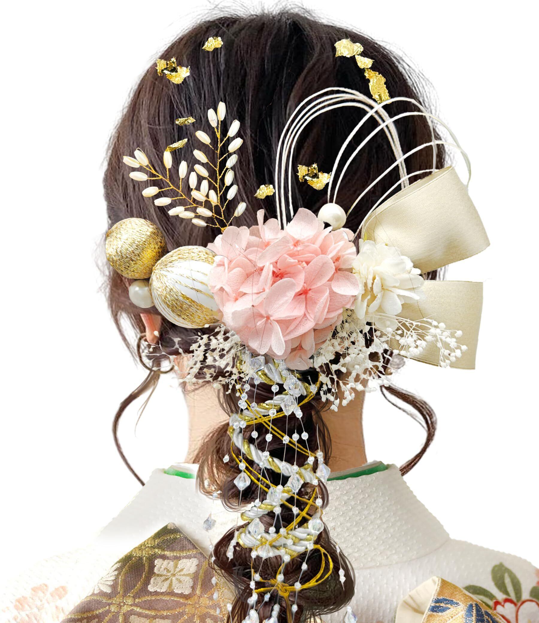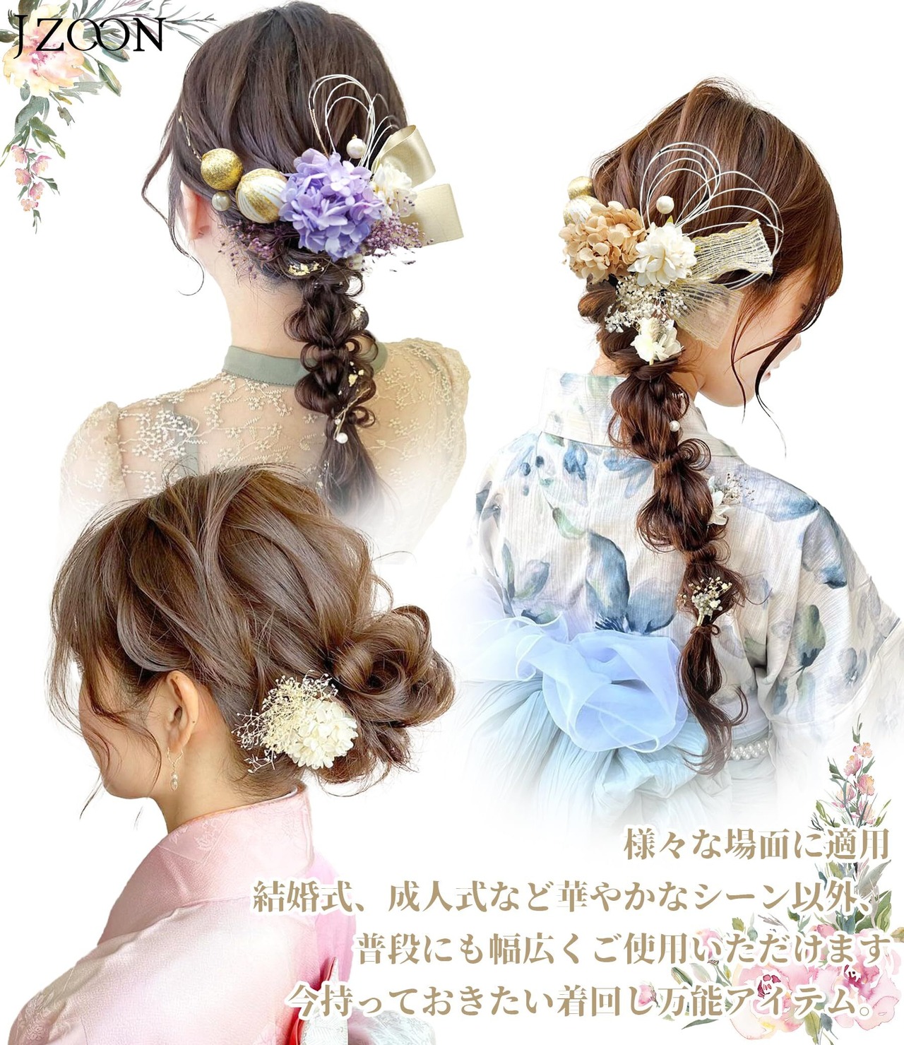 [JZOON] 髪飾り 9色展開 成人式 髪飾り ドライフラワー 袴 卒業式 和装 結婚式 振袖 プリザーブドフラワー 金箔 紐アレンジ 水引 和玉 A1600