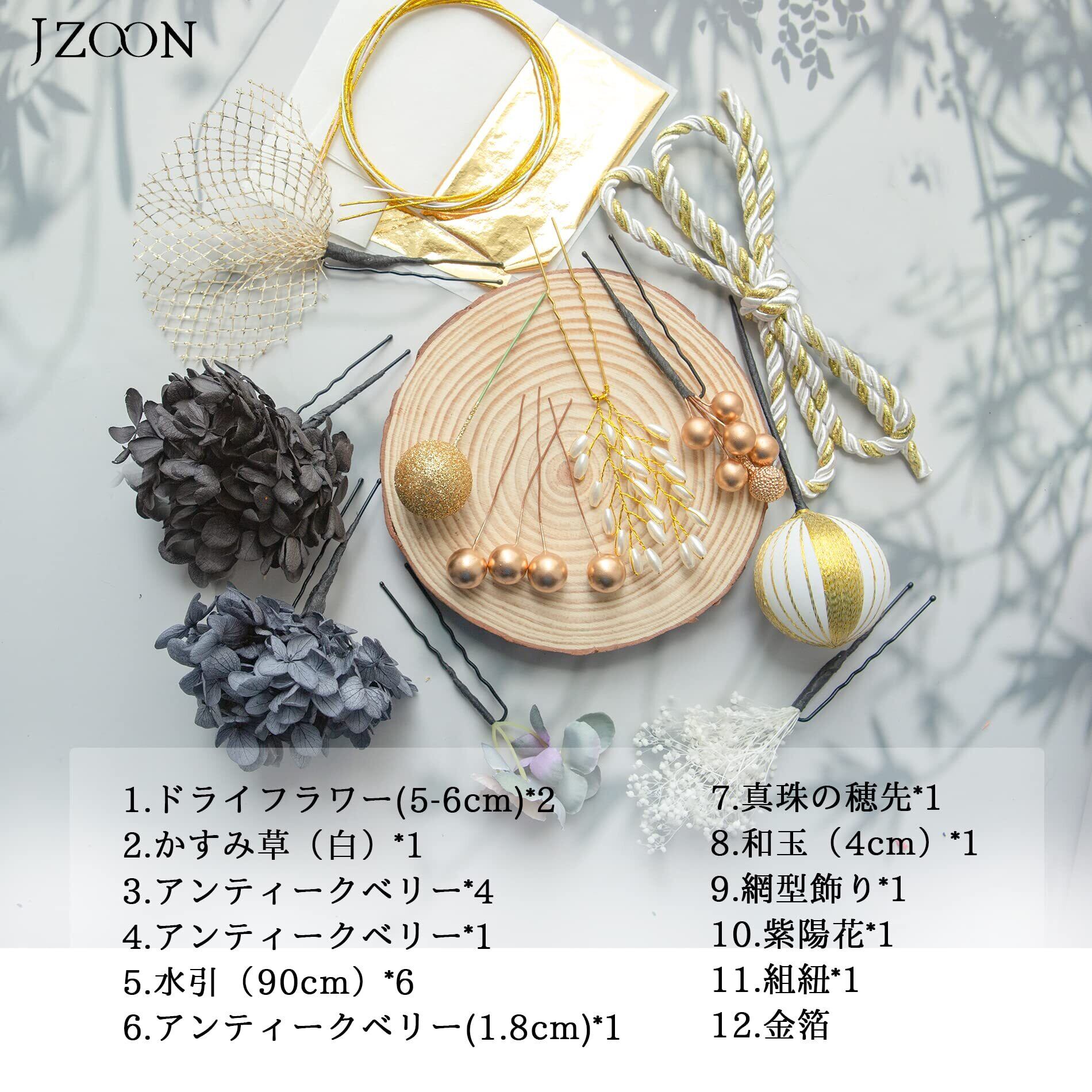 JZOON 成人式 髪飾り ヘアアクセサリー アジサイ テールリード ソーラーローズ アンティークベリー パール 水引き 金箔 リボン タッセル 結婚式 ウェディング 卒業式 発表会 入学式 披露宴 卒園式 お祭り 和装 振袖 浴衣 上品 おしゃれ 前撮り