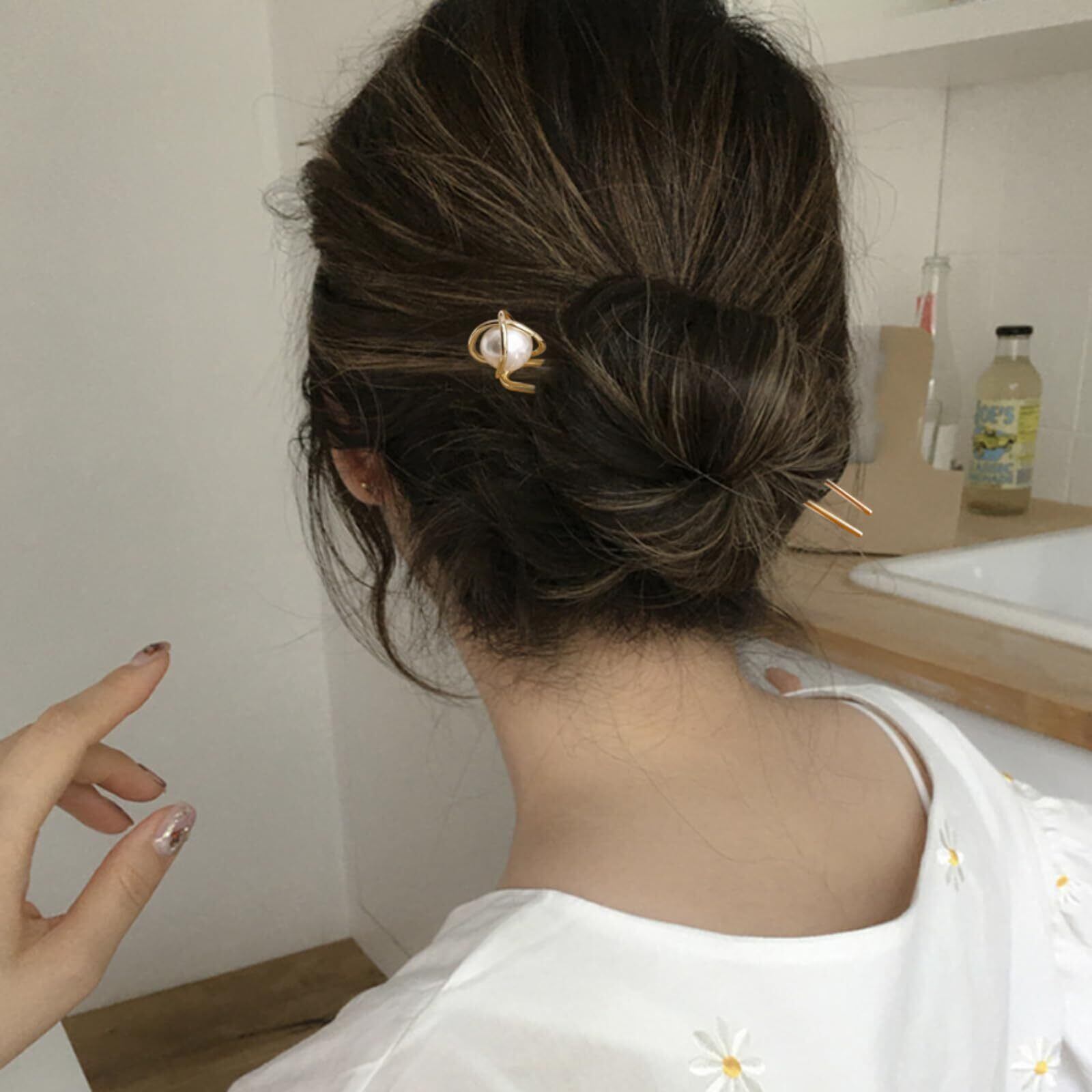 EZ PEACH 簪 かんざし 髪飾り 和装 パール Uコーム 髪飾り かんざし 結婚式 着物 成人式 発表会 (Gold-パール)