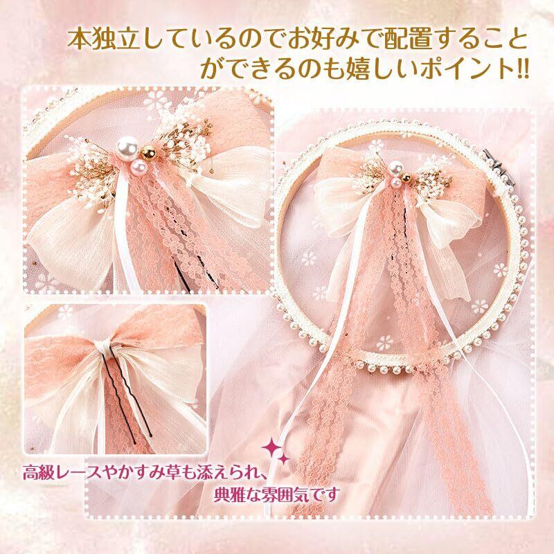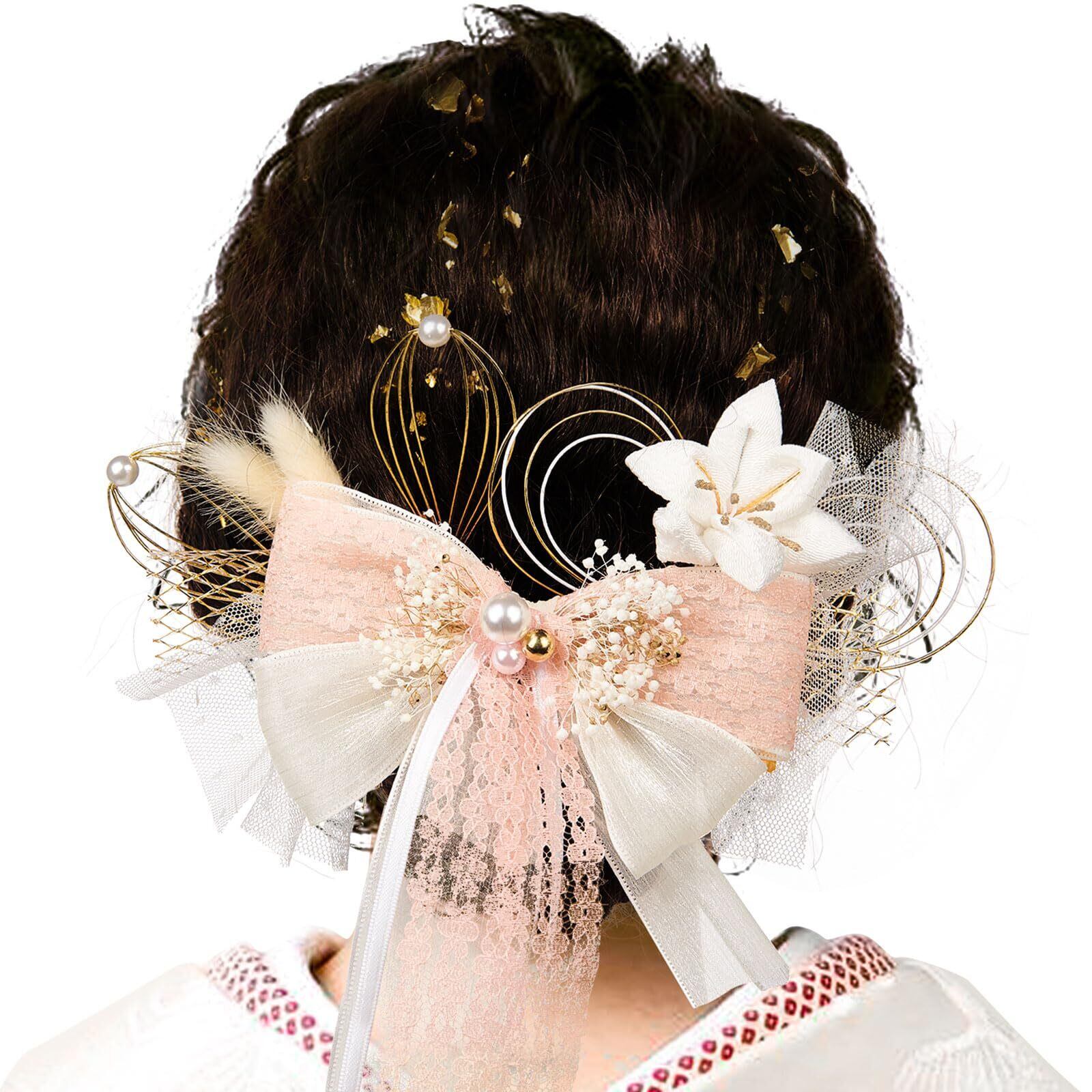 [OTAKUMARKET] 髪飾り 成人式 振袖 リボン 12点セット 花 袴 卒業式 着物 髪 飾り 和装 浴衣 髪 飾り 水引き 七五三 コーム ヘアアクセサリー 金箔 付き 3カラー (ピンク) | Bloomia