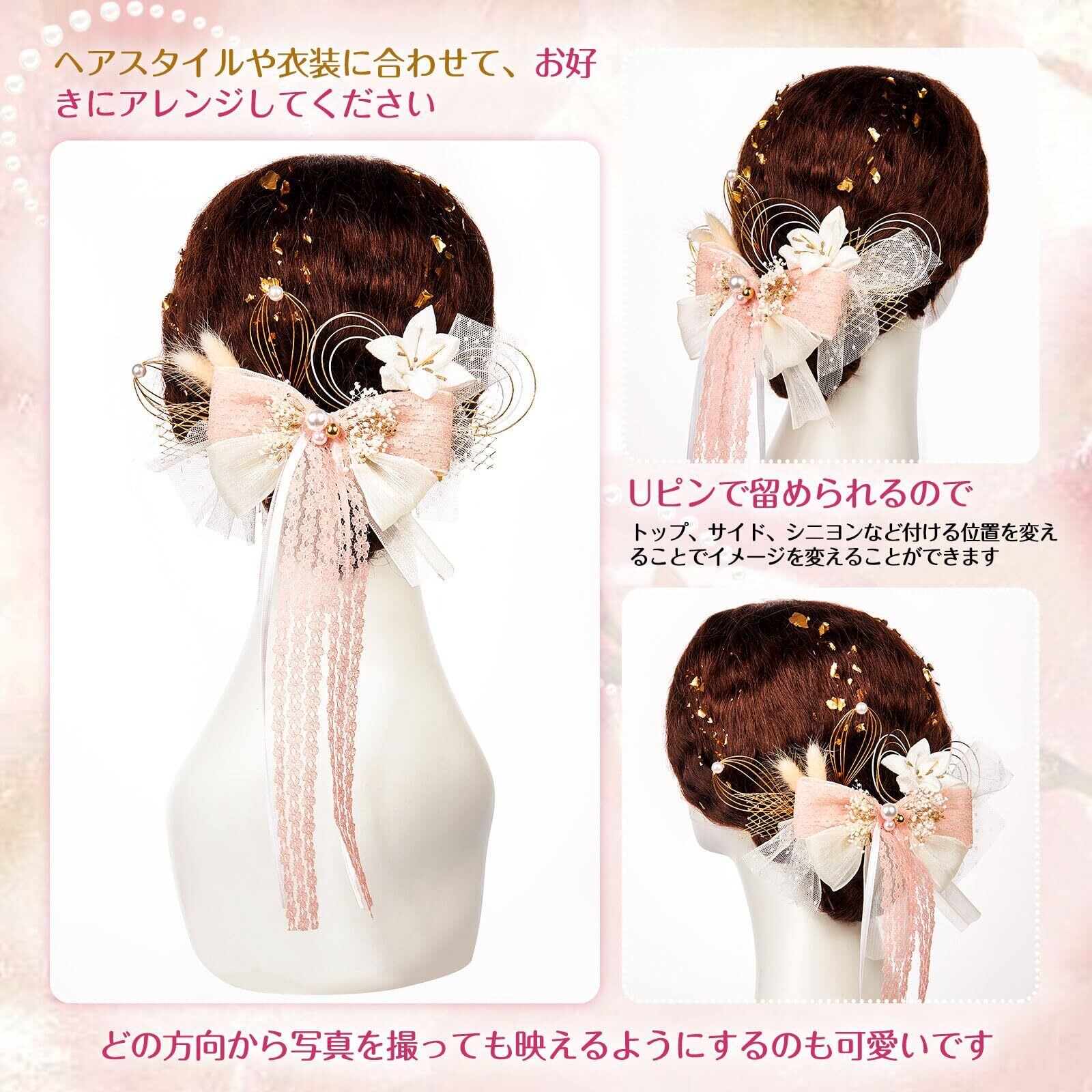 【リボン髪飾り用途】リボンの髪飾りセットです。成人式の髪飾りは前撮りに最適。夜会巻き、アップヘア、サイドアップ、お団子、編み込みなど人気のまとめ髪の補助やアクセントにオススメです。大人の方は結婚式、パーティー、謝恩会、成人式、卒業式など華やかなお席の和装、振袖姿や浴衣のコーディネートにぴったりします。お正月、お祝い事、七五三、卒園式などにオススメです。