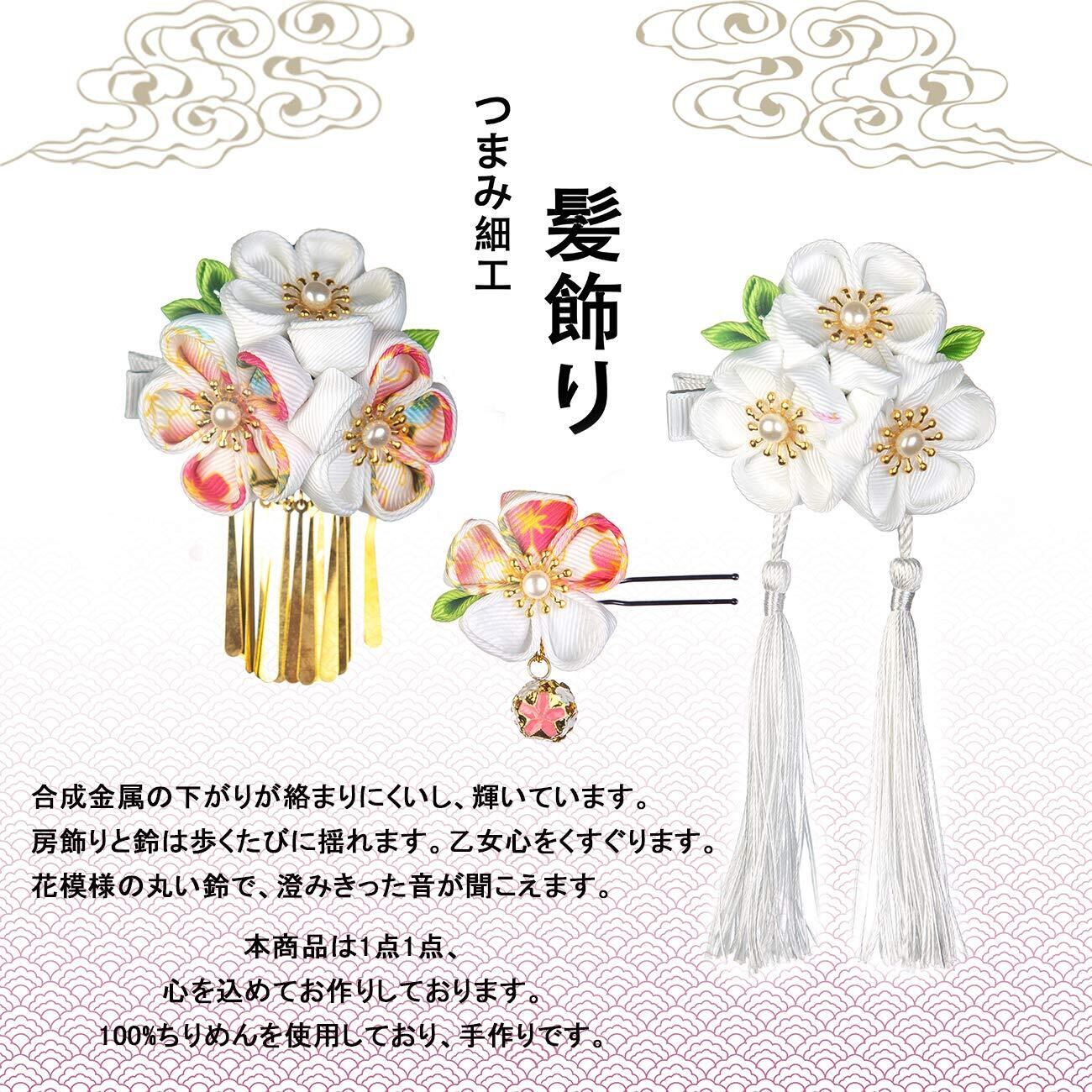 [JZOON] 髪飾り3点セット 成人式 七五三 浴衣 袴 着物 振袖 和装 つまみ細工 花 卒業式 結婚式 鈴付き 手作り 赤 青 紫 ピンク 白 5色全15選