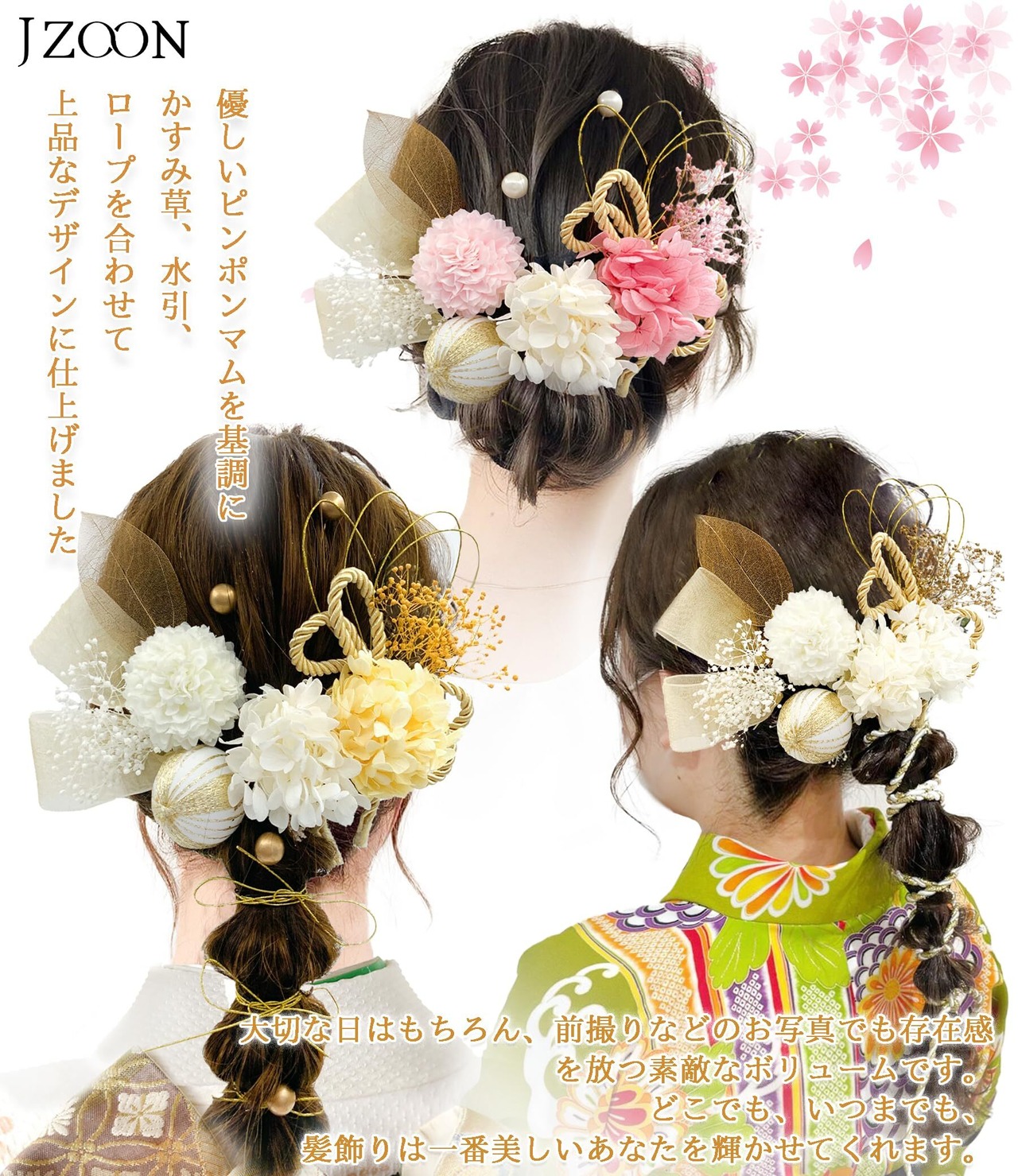 [JZOON] 成人式 髪飾り ドライフラワー 【8色展開 】 卒業式 振袖 着物 袴 和装 花 紐 結婚式 ゴールド 赤 白 金箔 葉 A15700