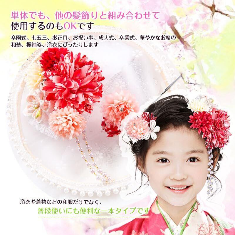 【用途】お花の髪飾りです。成人式の髪飾りは前撮りに最適。夜会巻き、アップヘア、サイドアップ、お団子、編み込みなど人気のまとめ髪の補助やアクセントにオススメです。子供さんは卒園式・七五三・お正月・お祝い事・桃の節句などにオススメです。大人の方は結婚式・パーティー・謝恩会・成人式・卒業式など華やかなお席の和装、振袖姿や浴衣のコーディネートにぴったりします。