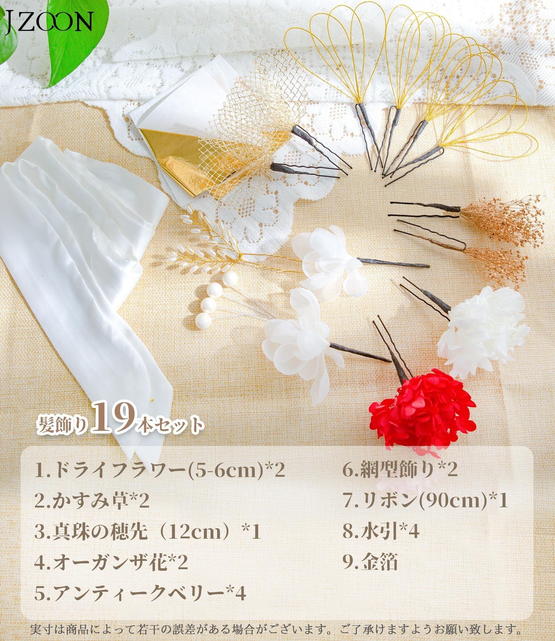 [JZOON] 髪飾り 成人式 卒業式 和装 結婚式 袴 着物 浴衣 振袖 ドライフラワー プリザーブドフラワー 花嫁 S2414