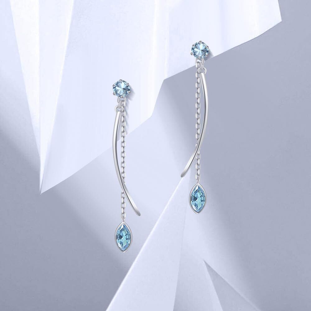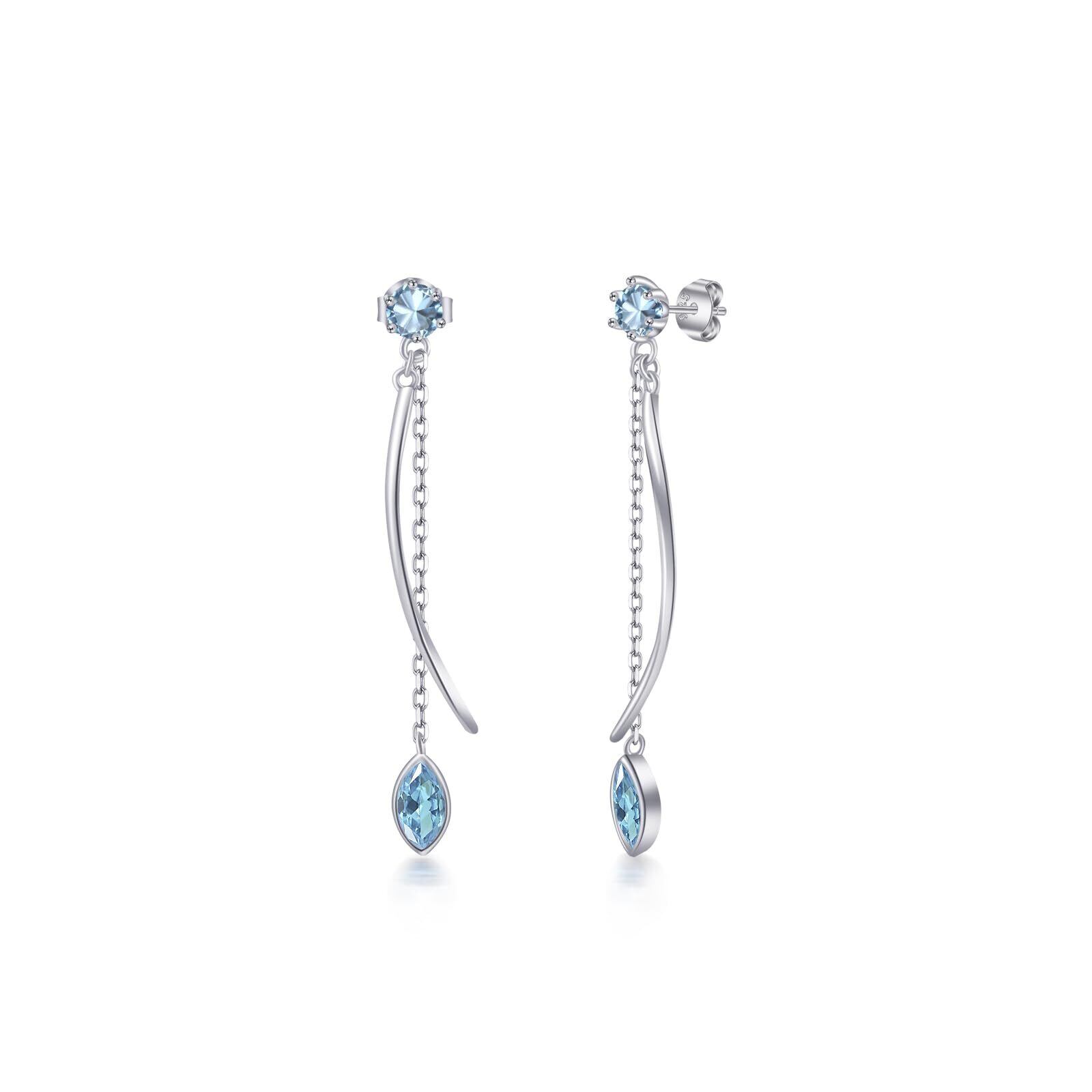 FH.bird アクアマリン ピアス レディース 人気 ゆれる 大人【優美な線】チェーンピアス 金属アレルギー対応 ピアス 揺れる 3月誕生石 夏上品 普段使い ホワイトデー 誕生日プレゼント女性 人気 | Bloomia