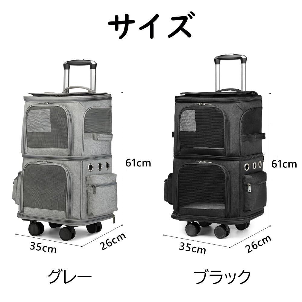 ペットキャリーバック 2層 2匹 猫 多頭飼い ペットキャリー 2層 ボストンキャリー ペットカート 4輪 多頭 猫 2匹 用 キャリーカート折りたたみ 猫犬中型2匹用ペットカート折りたたみ 通気口ポータブルケージ 360度回転 持ち手付き 変形しない散歩出かけ 防災 601337(グレー)