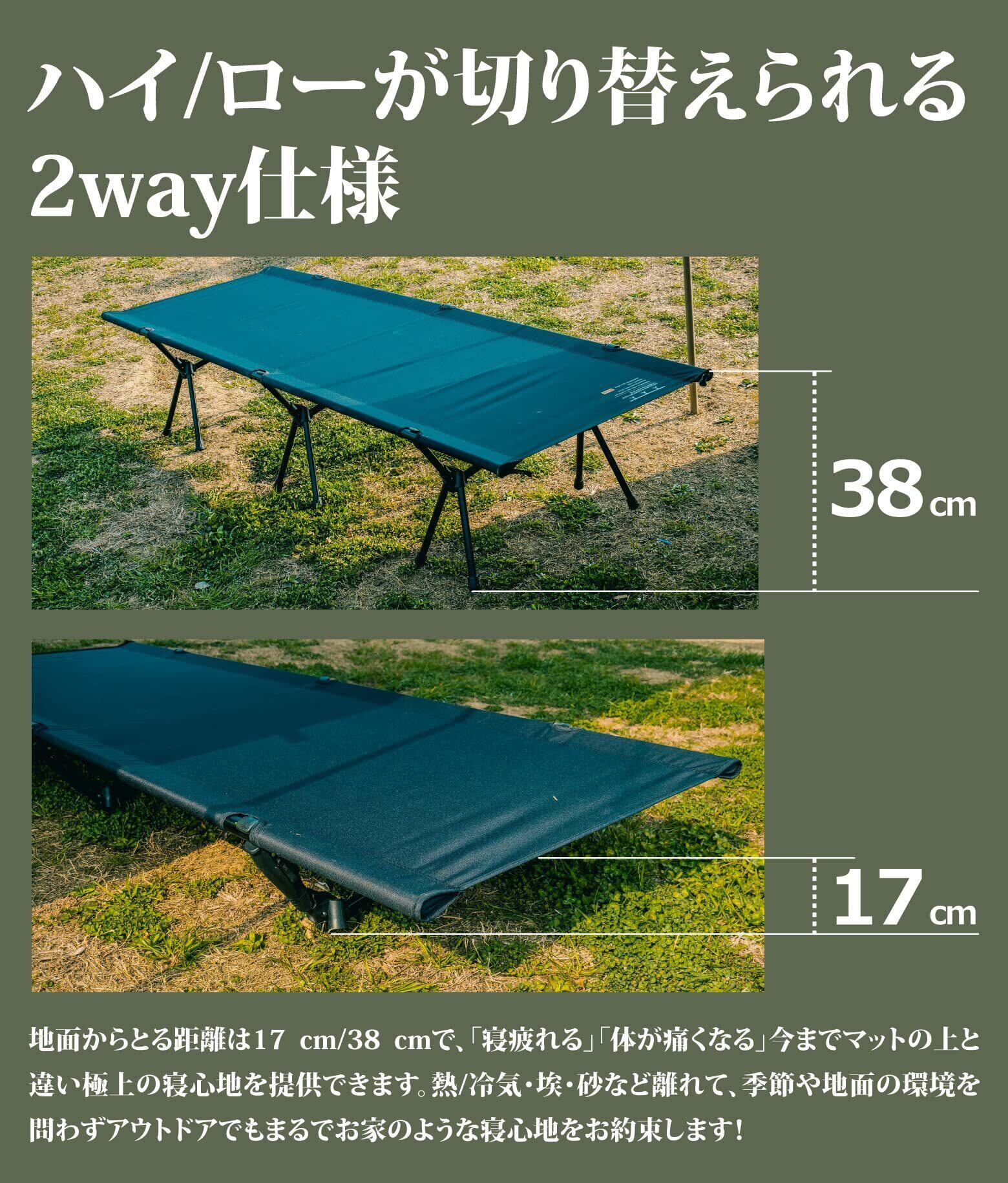 YOLER|ヨーラー キャンプ コット 軽量 静音 2WAY ハイ/ロー切替可能 コンパクト 折りたたみ式 ワイド 簡易ベッド アウトドア 防災 車中泊 自宅用 初コット 快眠 耐荷重150kg