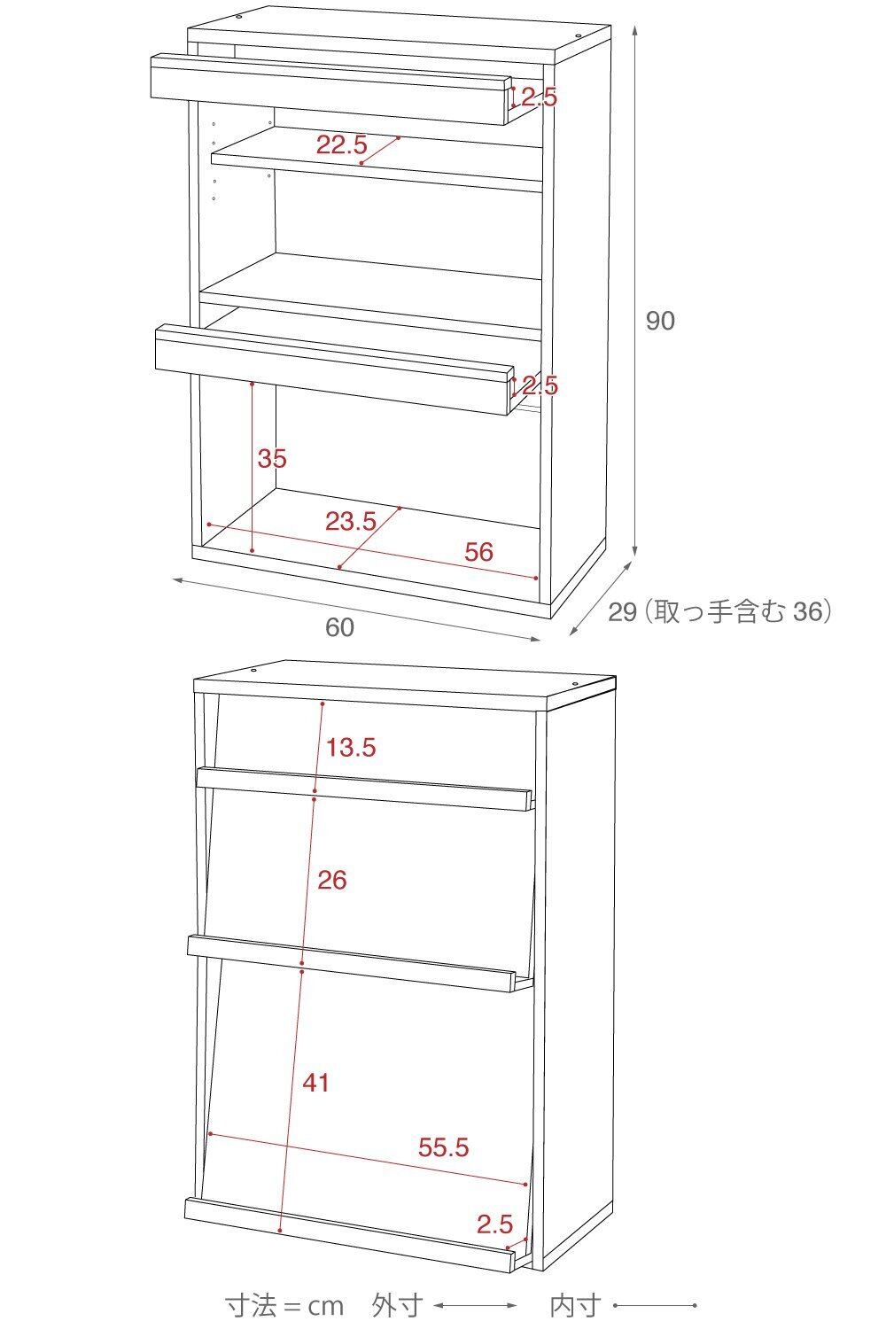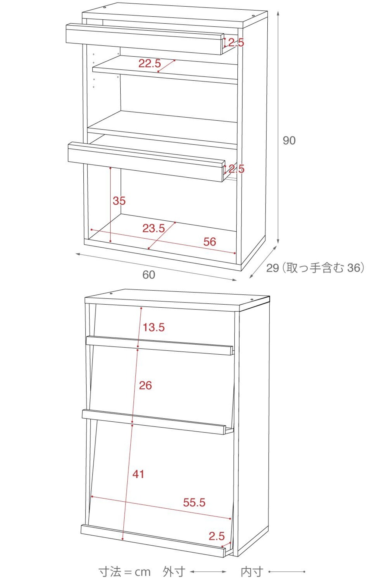 サイズ:[外寸]幅60×奥行29.0(取っ手含む36.0)×高さ90cm