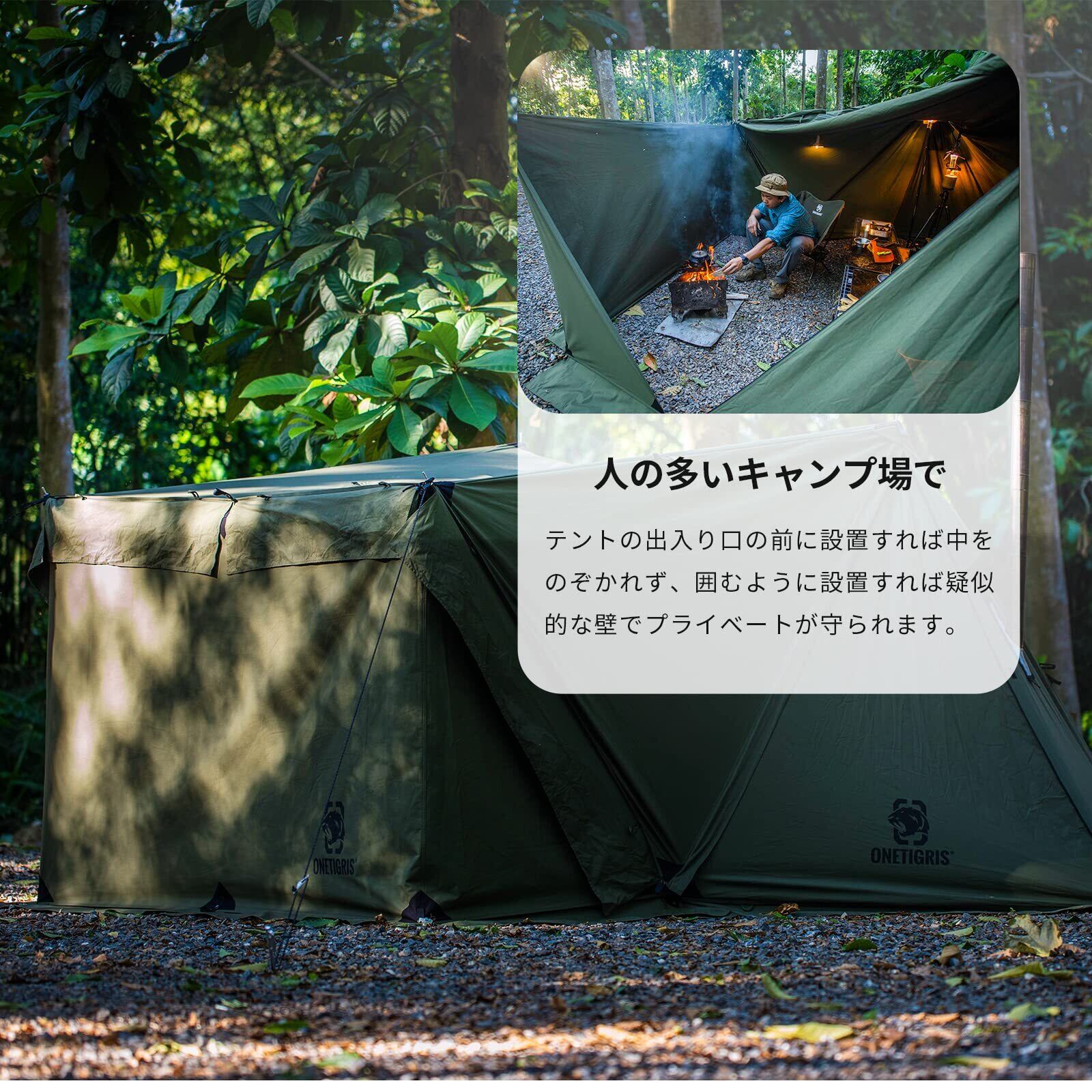 OneTigris 焚き火陣幕 テント前幕 TC素材 目隠し 多機能風よけ テントと連結可能 スノースカート付き 難燃 遮光 撥水 防カビ加工 軽量 388×218×130cm キャンプ アウトドア用 | Bloomia
