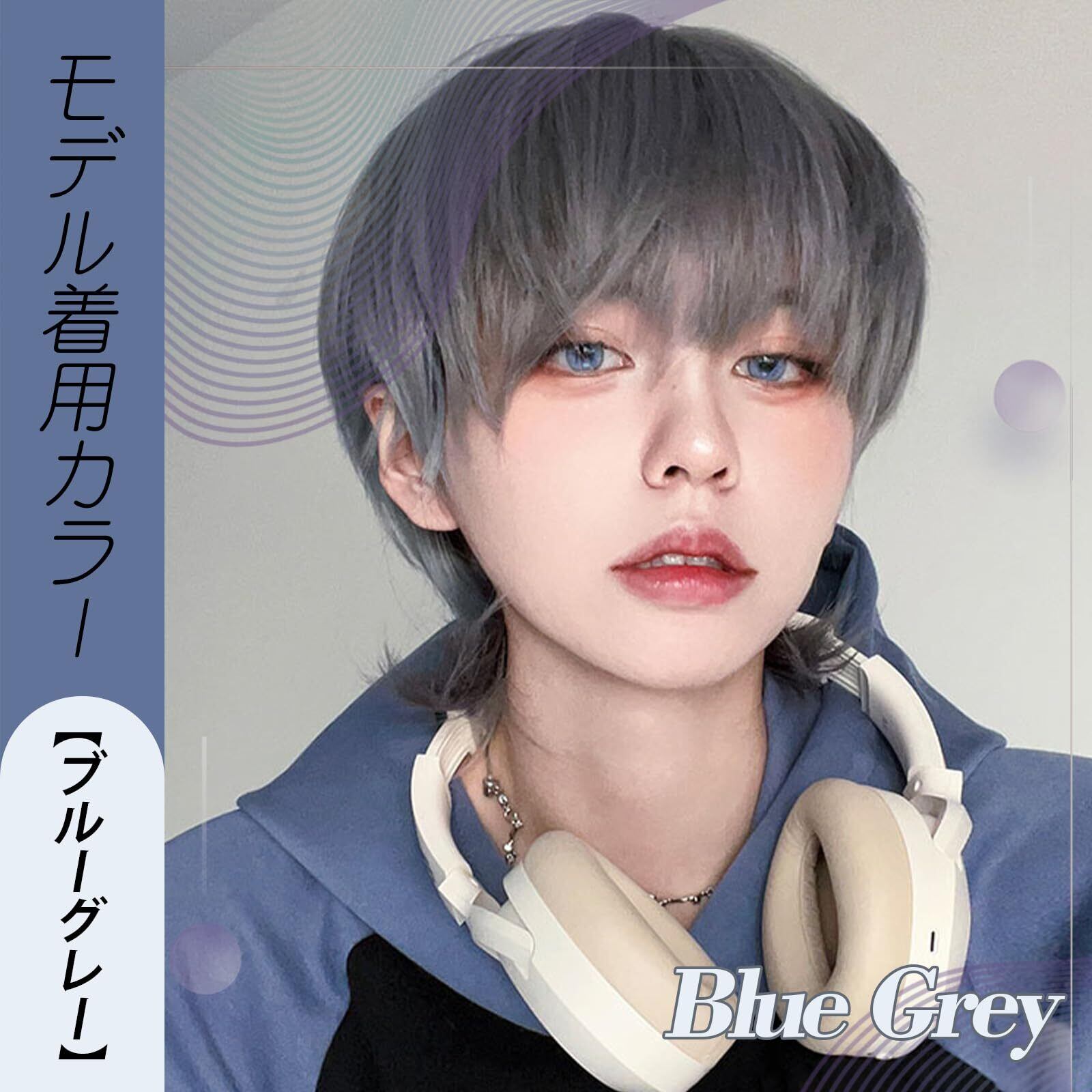 FESHFEN ウィッグ メンズ ショート かつら 黒髪 フルウィッグ 男装 ウィッグ 男性 カツラ 原宿 イケメン ハンサム 男性用 ウルフ ファッション イメチェン ハロウィン 男女兼用 自然 小顔 耐熱 人気 ネット/櫛付き ブルーグレー(ウルフ) | Bloomia
