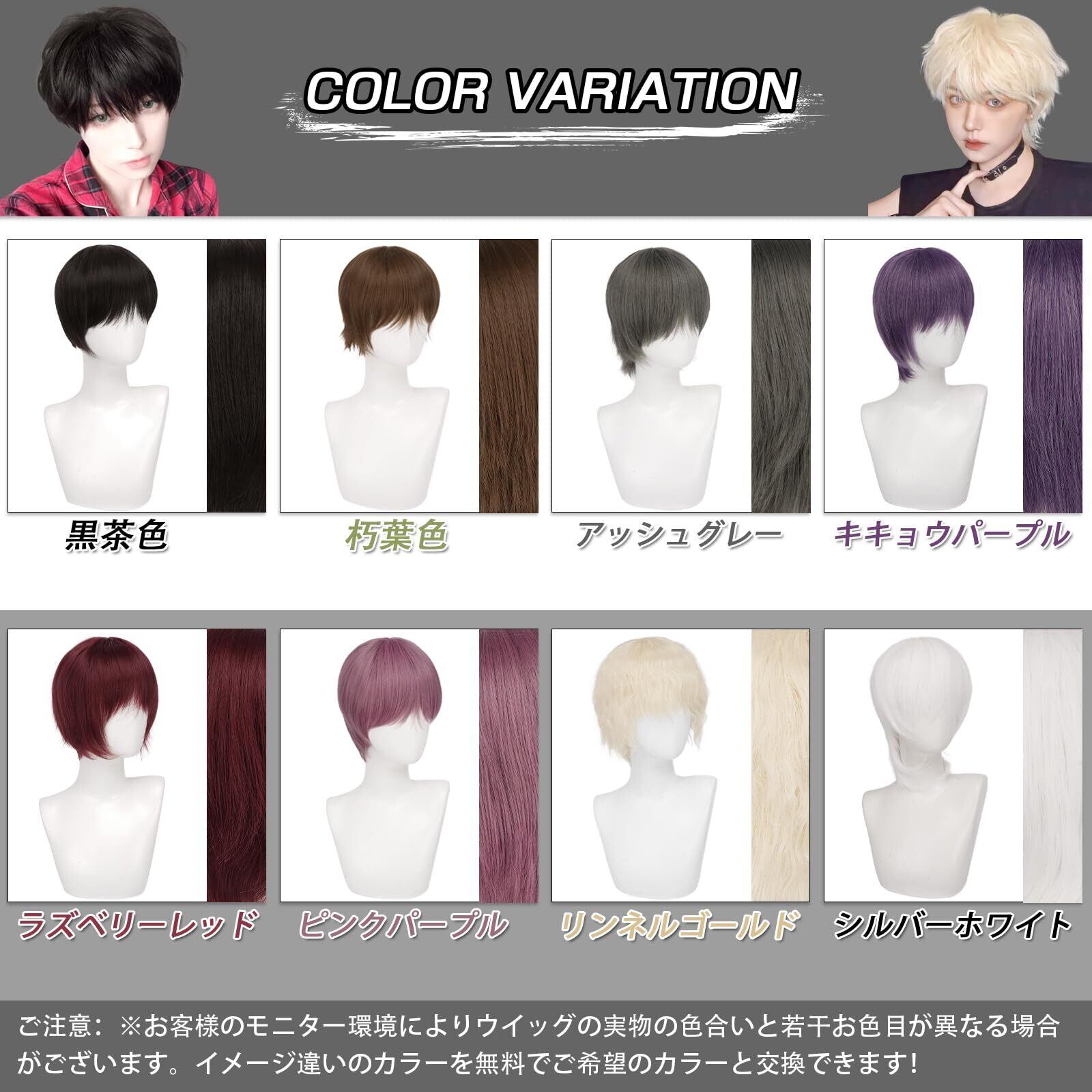 ❀豊富なカラー:①黒茶色②ピンクパープル③朽葉色④リンネルゴールド⑤キキョウパープル⑥ラズベリーレッド⑦シルバーホワイト⑧アッシュグレー。人気の個性派カラー!Hawkkoのカラーの中でメンズウィッグの魅力を引き出す色を選びました色が用意しているので、同じスタイルでもまったく違う印象になります!一般的な髪の色ではなく、夢のようなコスウィッグの感じです。※(商品の色味は出来るだけ現物に近い色を再現するように努めておりますが、撮影環境やモニター環境により色の見え方に差異がございます。予めご了承ください。)