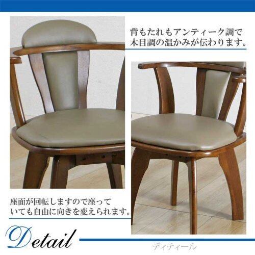 不二貿易 ダイニングチェア 幅52.5×奥行50×高さ70cm ブラウン 合成皮革 天然木 360度回転 肘付 81236