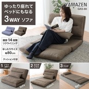 山善(YAMAZEN) ソファ ソファーベッド カウチ 3WAY ゆったり 一人掛け クッション付き 腰部14段階 リクライニング 簡易ベッド ローソファ 幅80×奥行70/193.5×高さ13.5/57cm 一人暮らし 完成品 グレー GAS-80(GY)