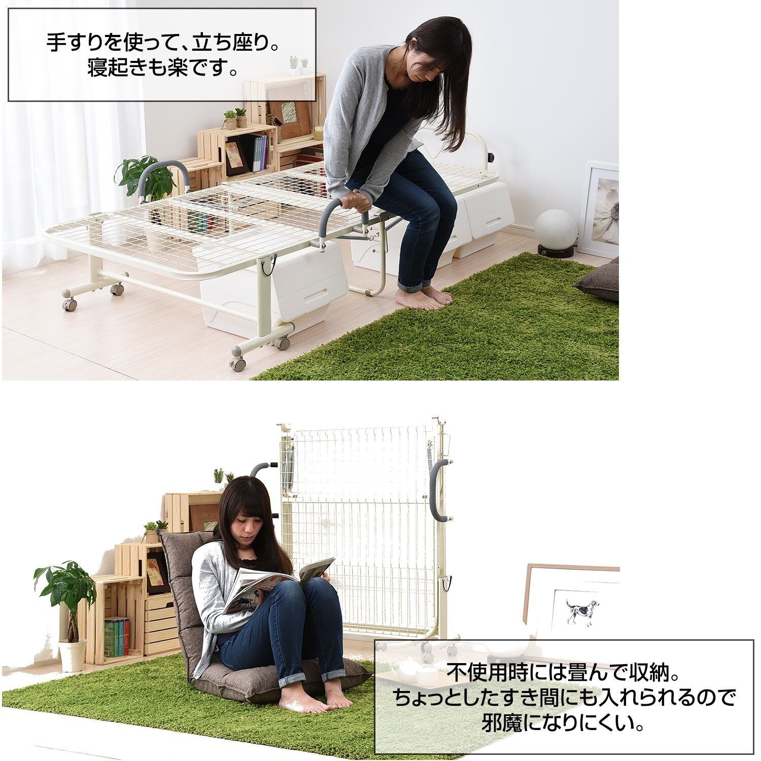 ●軽量で折りたたみ時もコンパクトになるメッシュフレームの折りたたみベッド