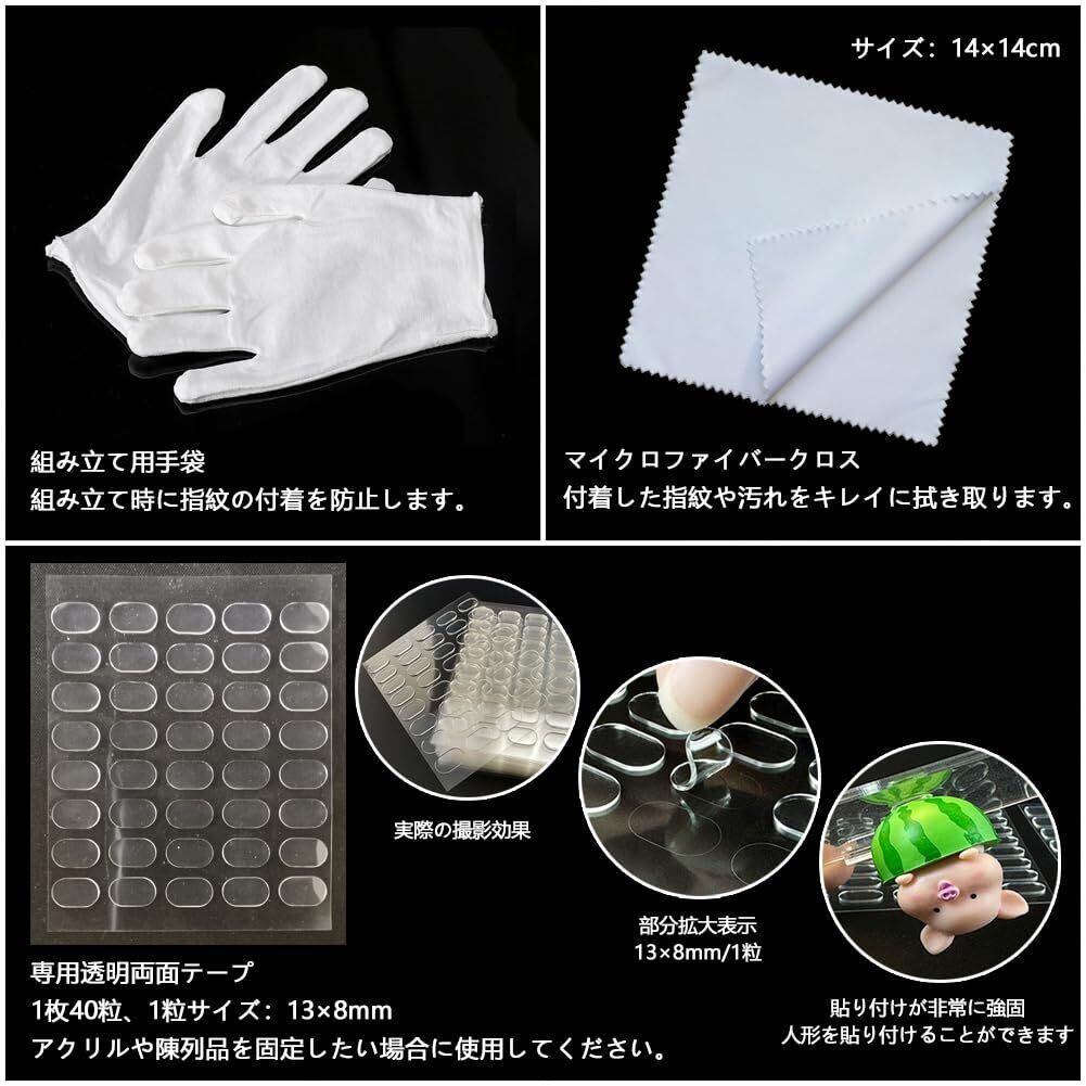 【材質】-アクリル材質で作られたキャラクターアニメ展示台で、5段階段式の展示台で、小物を十分に見せることができ、指紋防止手袋をプレゼントします×1足、清潔布×1枚、傷なしテープ×40粒。