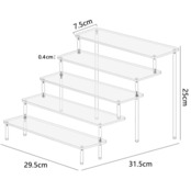 【サイズ】-化粧品陳列台組立総サイズ、幅:約29.5 cm、高さ:約25 cm、深さ:約31.5 cm。ステージ5階の各階の寸法、長さ:29.5 cm、幅:7.5 cm、厚さ:0.4 cm