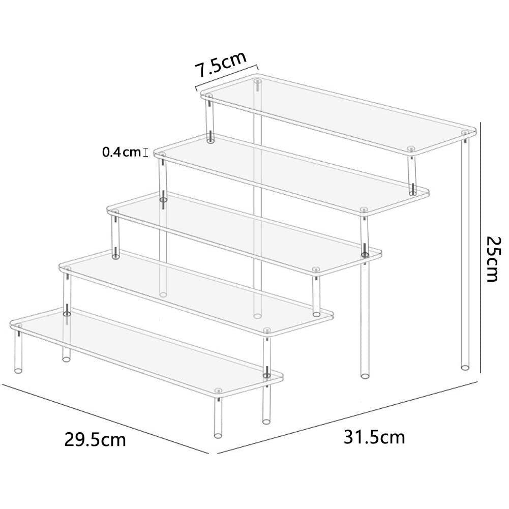 KIMEYA 展示台 アクリル ディスプレイ フィギュアスタンド コレクションケース ディスプレイスタンド アクリルステージ ひな壇 収納棚 フィギュアケース マニキュア アクセサリー 人形 化粧品 陳列台 組み立て式 透明 (5段 長さ30cm) | Bloomia