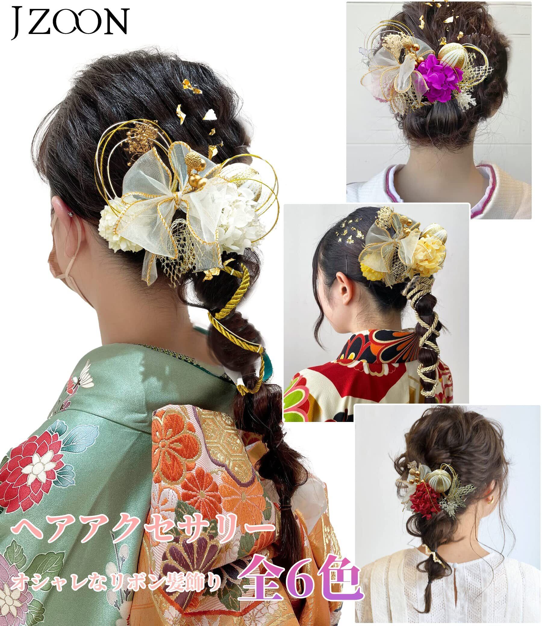[JZOON] 髪飾り 6色展開 ドライフラワー 髪飾り 組紐 赤 ヘアアクセサリー 成人式 水引 ヘッドパーツ アジサイ 振袖 着物 卒業式 七五三 浴衣 袴 結婚式 かすみ草 カスミソウ 和装 手作り リボン 網 和玉 H5206