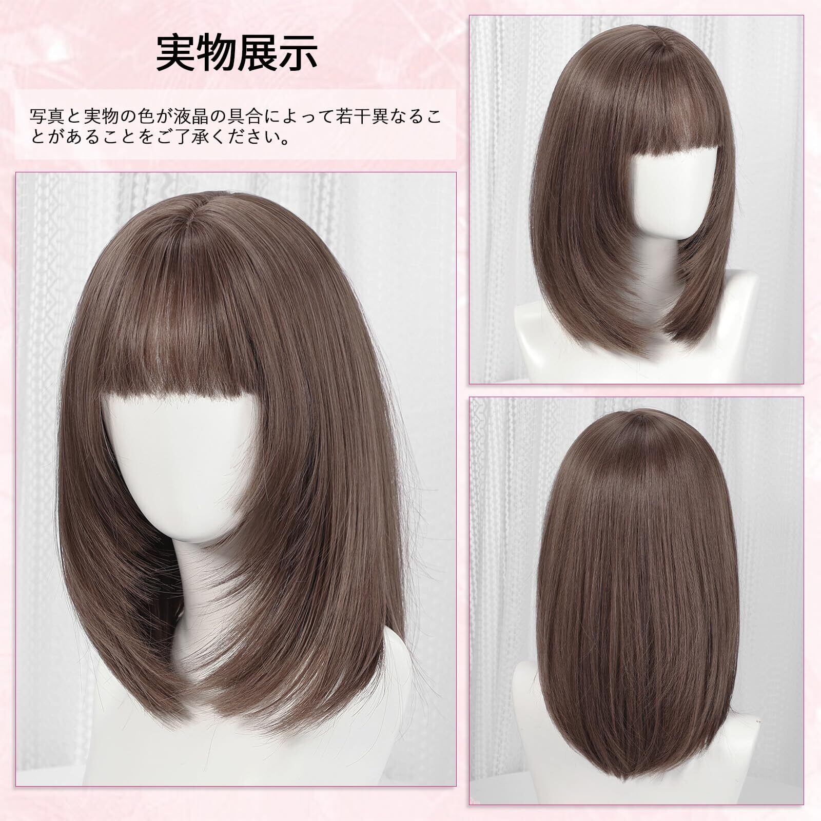 EMMOR ウィッグ セミロング かつら 女性 フルウィッグ 女装 ウィッグ ミディアム ストレート レディース wig 自然 小顔 耐熱 レイヤー ネット付き ブラウン系・パープル | Bloomia