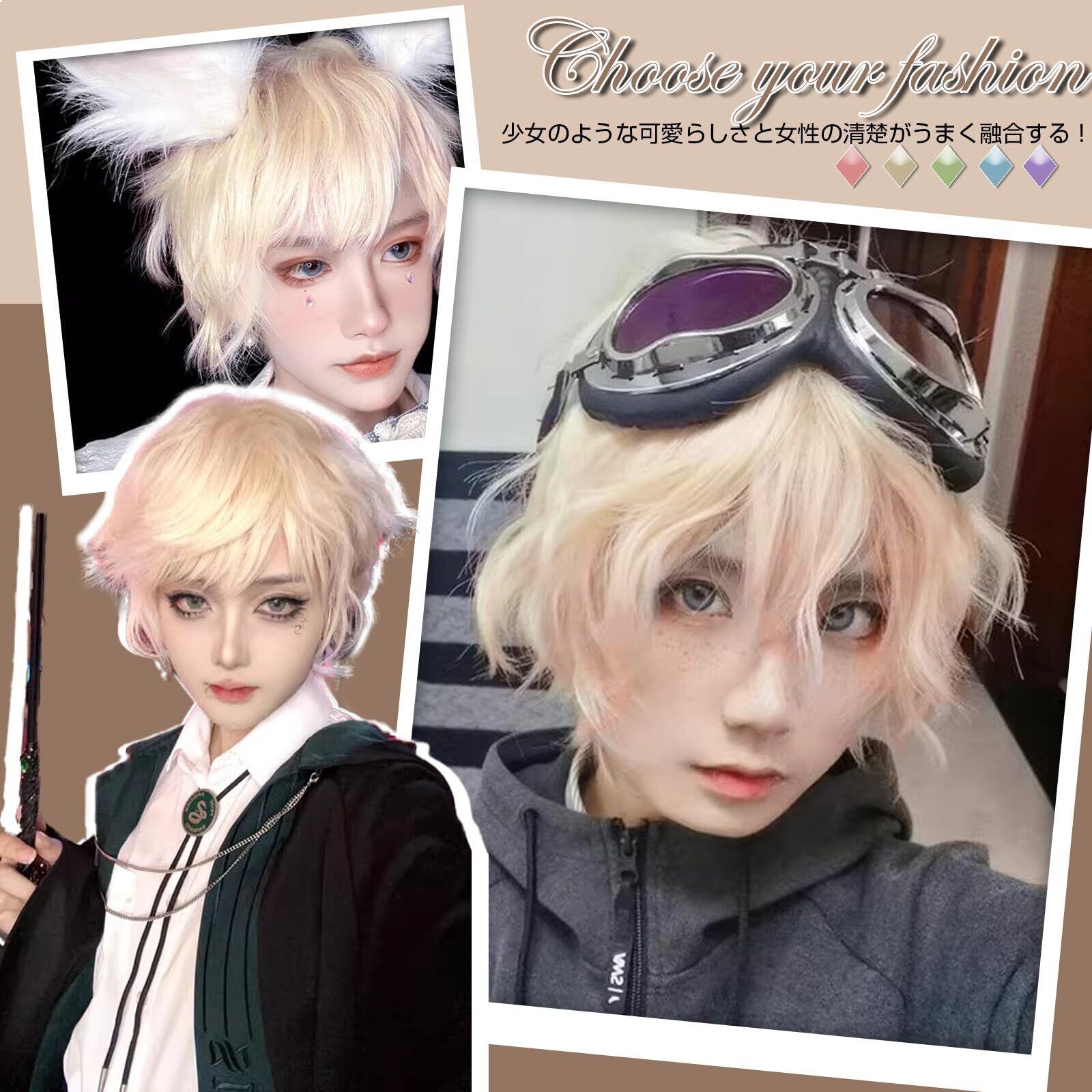 Hawkko ウィッグ メンズ ショート かつら フルウィッグ カール 男装ウィッグ wig 黒 黒髪 男装 カツラ メンズ ウィッグ 原宿 イケメン ハンサム 男性用 学生 通勤 日常 自然 小顔 耐熱 人気 ファッション イメチェン cosplay コスプレ ハロウィン 男女兼用 ネット/櫛付き(リンネルゴールド) | Bloomia