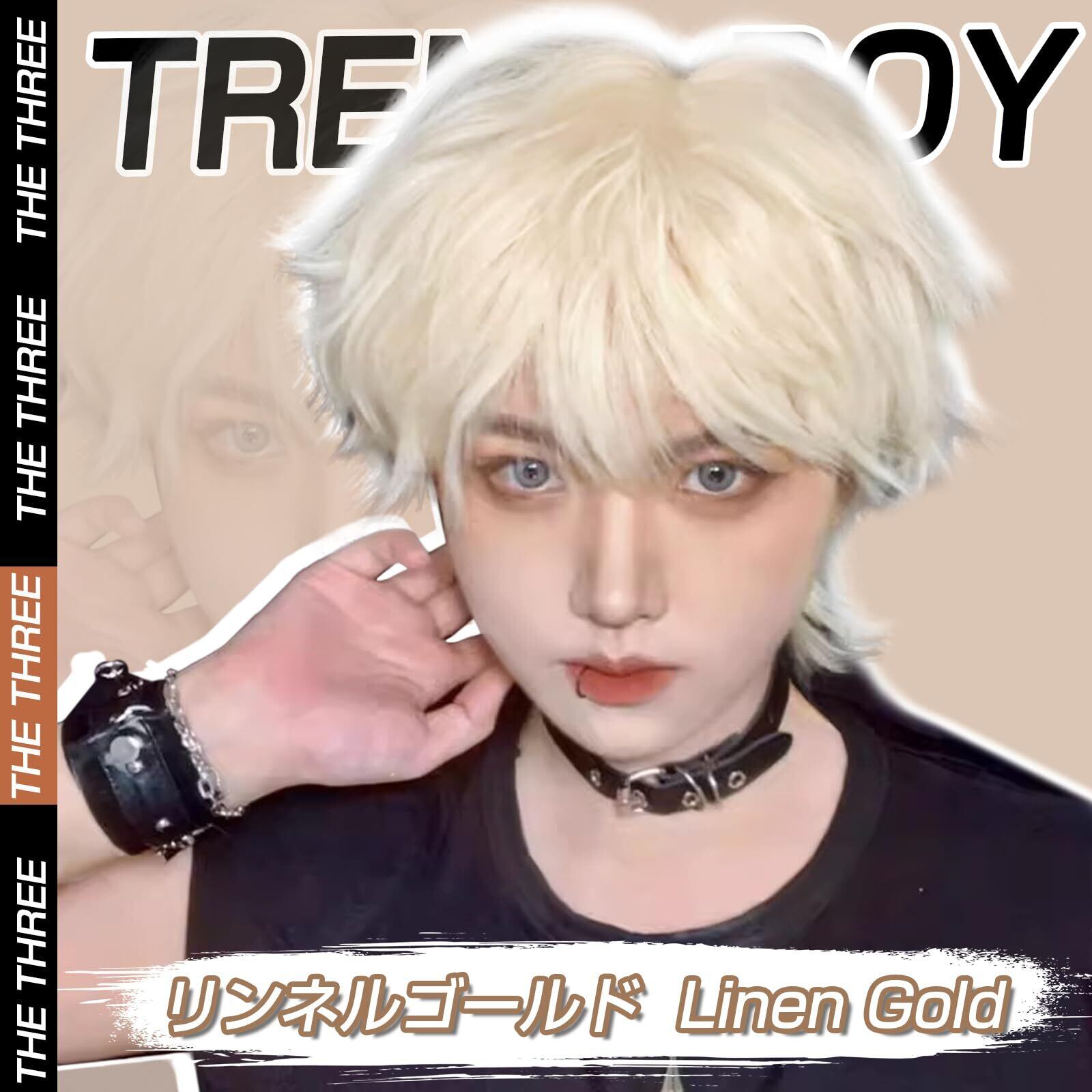 Hawkko ウィッグ メンズ ショート かつら フルウィッグ カール 男装ウィッグ wig 黒 黒髪 男装 カツラ メンズ ウィッグ 原宿 イケメン ハンサム 男性用 学生 通勤 日常 自然 小顔 耐熱 人気 ファッション イメチェン cosplay コスプレ ハロウィン 男女兼用 ネット/櫛付き(リンネルゴールド)
