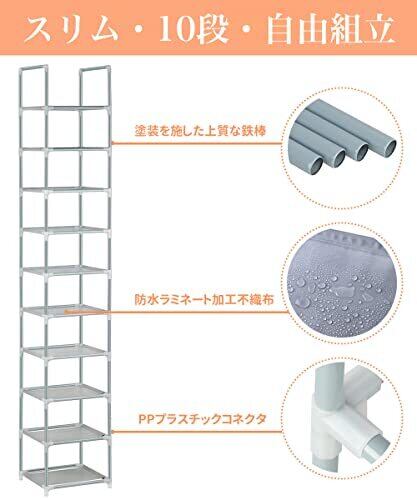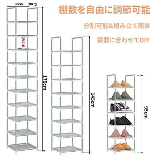シューズラック 10段 靴収納 靴棚 10足 下駄箱 省スペース シューズボックス スリム 玄関に靴を効率収納 靴入れ 組み立て式 幅約30×奥行30×高さ176cm(グレー)