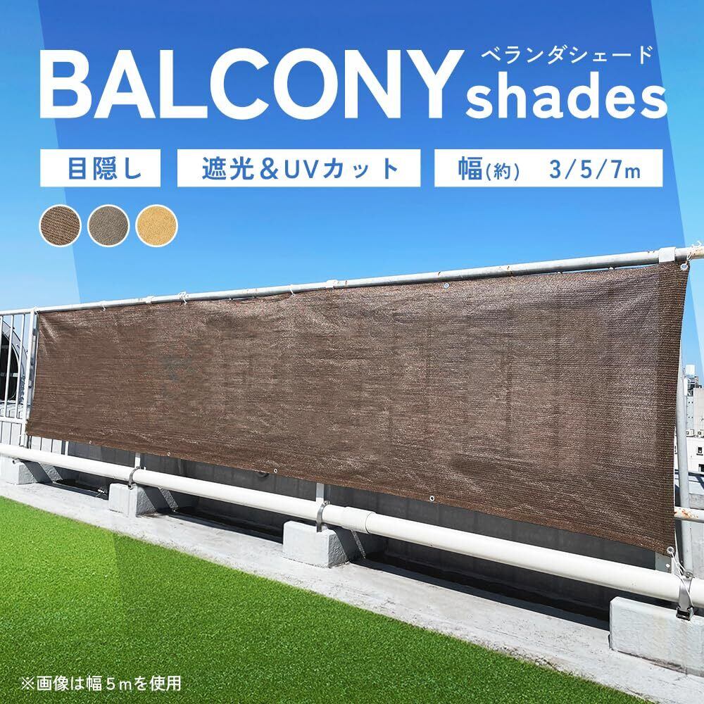 アイリスプラザ シェード 7m×1m イエローベージュ ベランダシェード 遮光率85%以上【目隠しに UVカット率85%以上 ハサミカット可 ハトメ ひも付属