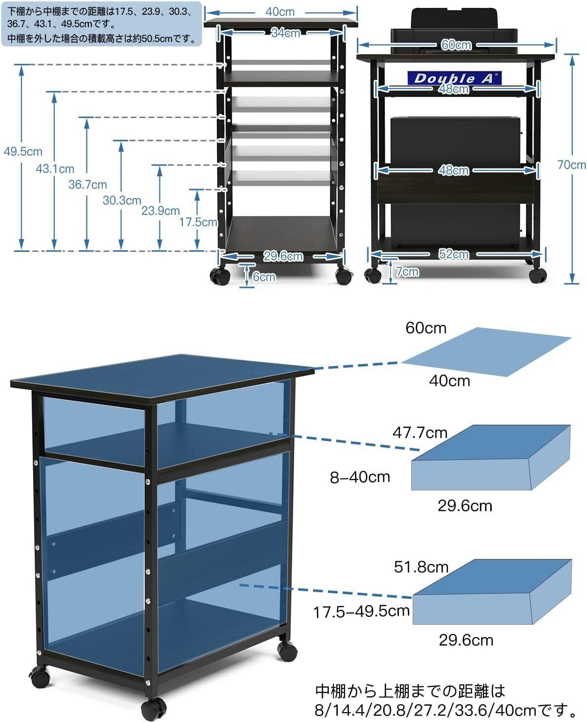 pcワゴン cpuワゴン キャスター付き 3段 デスク下 机下 収納 ワゴン ラック スリム 幅 60 奥行 40 高さ70cm パソコンワゴン デスクワゴン サイドワゴン 棚板高さ調節可能 (HT8543) | Bloomia