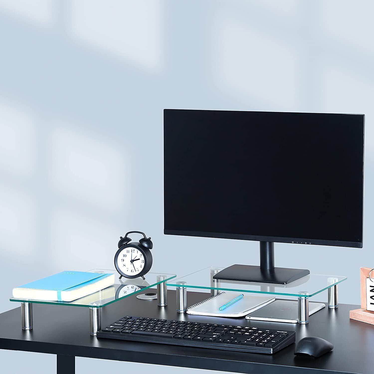 SKRYARD モニター台 机上台 高さ微調整可能 パソコン台 幅40cm 耐荷重20kg キーボード収納 pcスタンド モニタースタンド 安定性よい 透明 強化ガラス製 2個セット | Bloomia