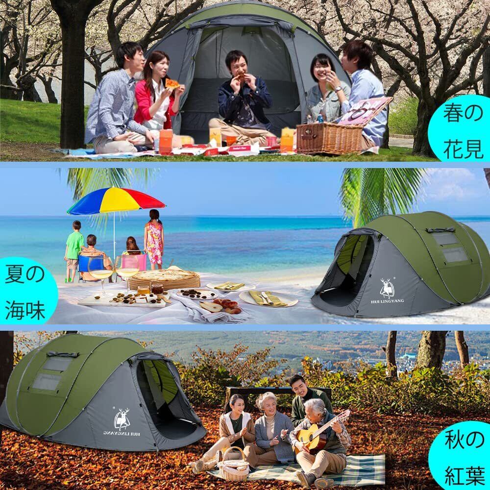 【テント生地や用途】テントの外帳生地:耐水圧3000mmの190Tポリエステル+PU防水生地。日焼けのと紫外線をしっかりに遮りできます。内帳生地:B3高密度通気性生地、インナーテントの底部シート:210Dオックスフォードクロス生地、テントの素材として十分な耐摩耗性と防水性を備えており、テントの内部を全方位の雨水や結露から保護できる。二層構造の天井カバーは、上部の水漏れを防ぐことができます。理想的な用途:春夏秋に対応、カジュアルなキャンプ、ハイキング、裏庭での休憩、アウトドアレジャー活動、旅行、ビーチパーティなど。