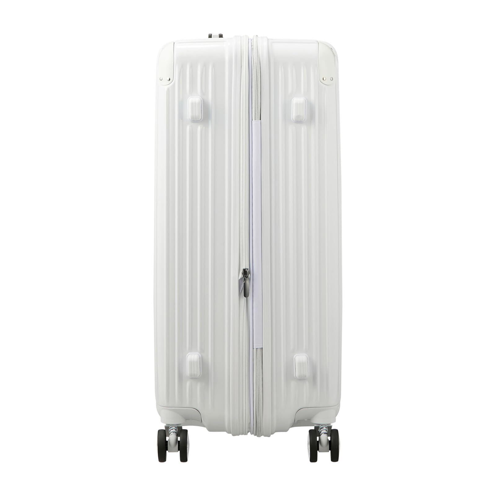 受託手荷物最大サイズ 安心清潔抗菌仕様。サスペンションダブルキャスター採用でスムーズで軽やかな安定走行を実現。拡張式で荷物が増えた時でも安心。ちょっとした手荷物をさげられるスライド式台座を搭載。