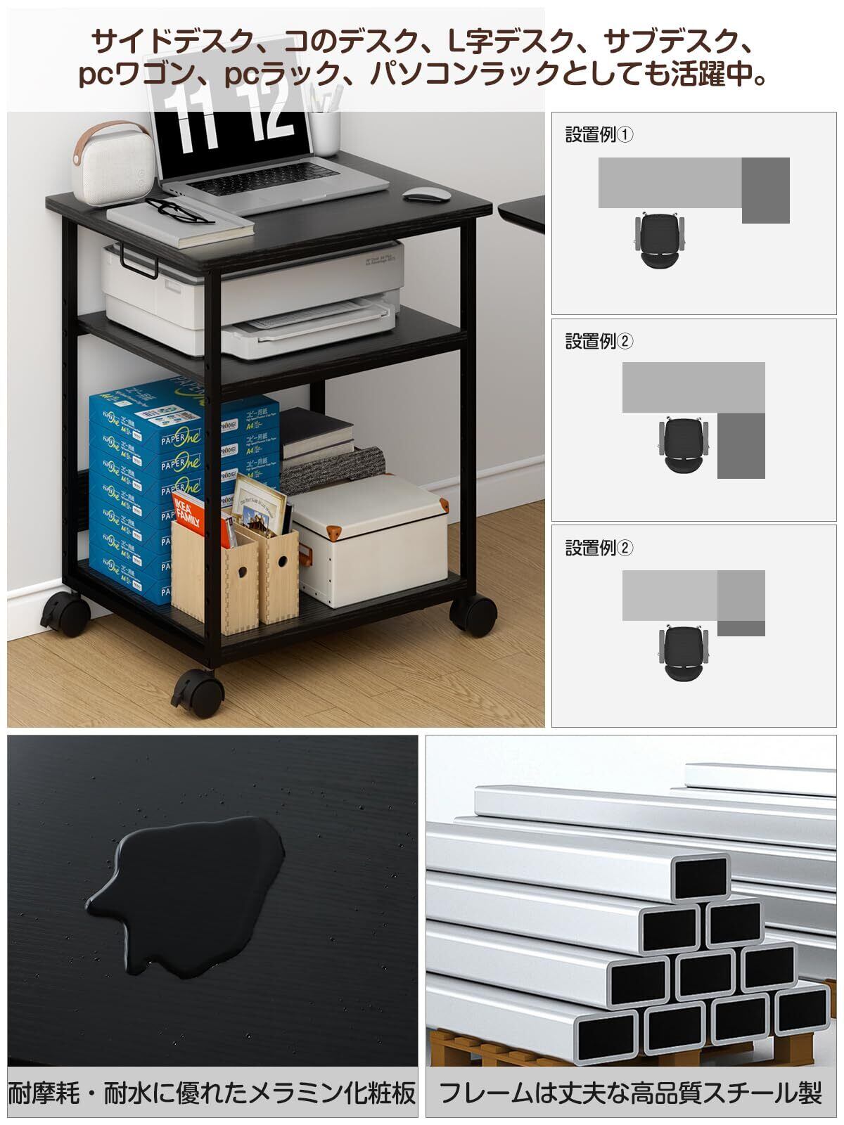 MIYOKI プリンター台 プリンタラック キャスター付き 幅60 奥行50cm 高さ70cm 総耐荷重90kg A3 A4対応 コピー機台 サイド デスク ワゴン デスク下 収納棚 事務用品収納 物置台 中棚9段階調節可能 組立簡単 (ブラック) | Bloomia