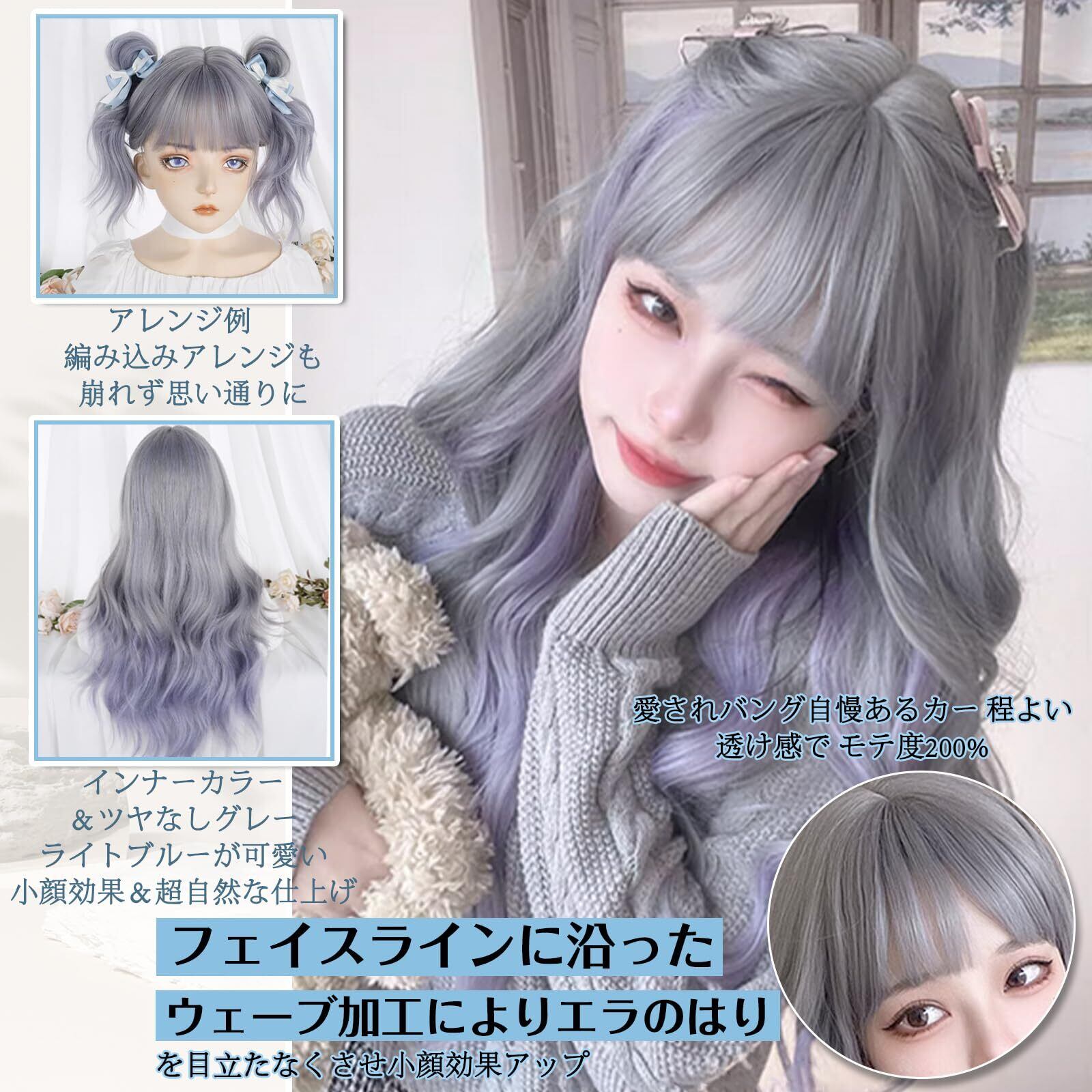 BARSDAR ウィッグ ロング 自然 カール ウェーブ 巻き髪 ロングヘアー かつら 女装 フルウィッグ ロリータ コスプレ かつら wig 小顔 自然 耐熱 ネット付き(グレー&パープル) | Bloomia
