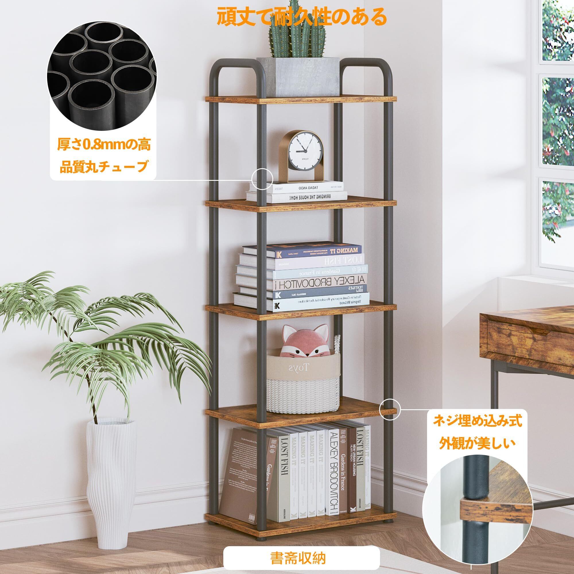 HCHQHS キッチンラック おしゃれ オープンシェルフ 本棚 組立品 5段 ディスプレイ 食器棚 スリム 隙間収納 木目 組立簡単
