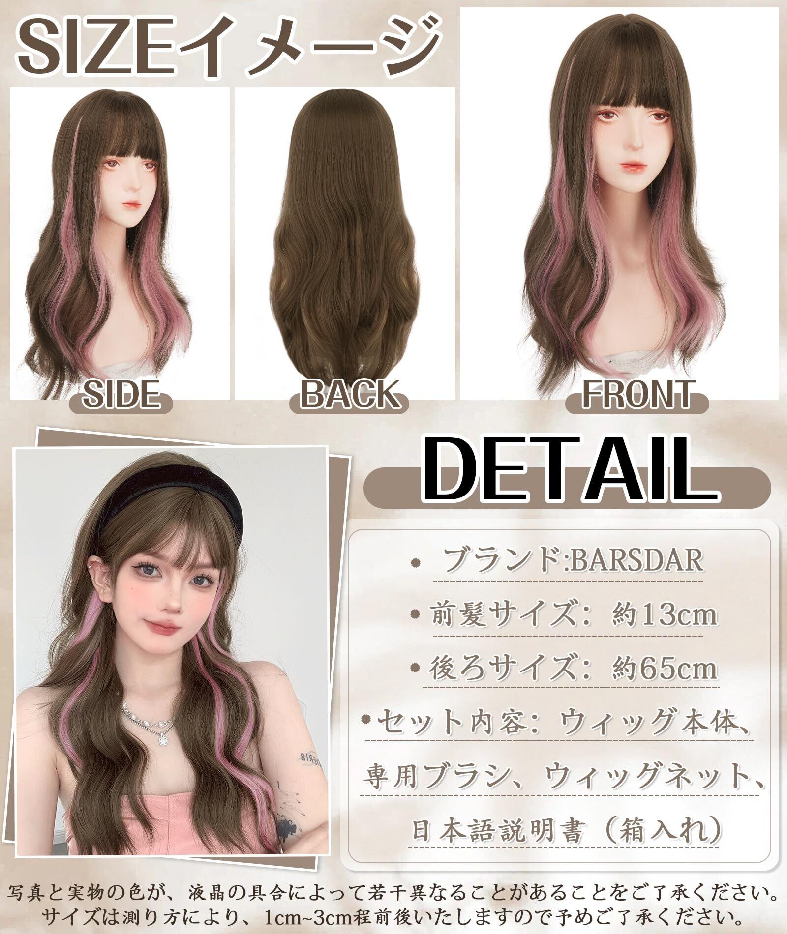 BARSDAR ウィッグ ロング 巻き髪 インナーカラー フルウィッグ ウェーブ 自然 女装 ウィッグ ウェーブ wig 原宿系 グラデーション お洒落 ファッション 可愛い レディース 小顔 耐熱 ネット/櫛付き クールブラウン&ピンク | Bloomia