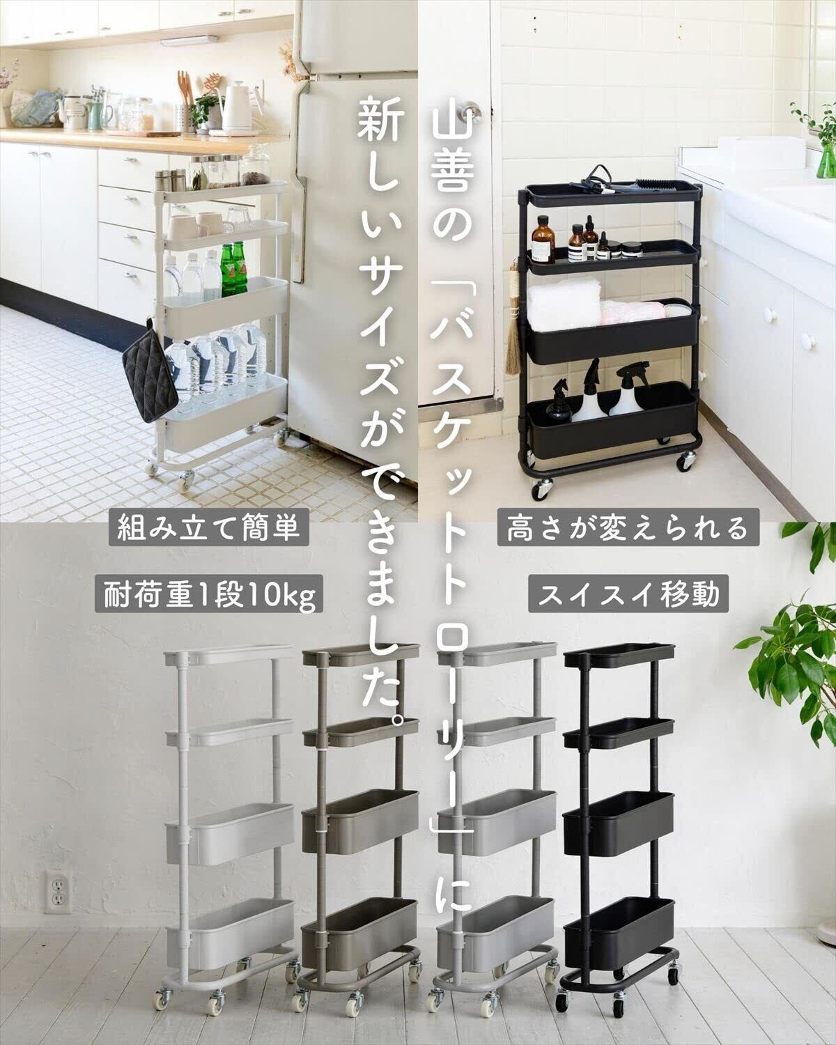 【高さ調節可能】収納したいものに合わせて、バスケットの位置を自由に設定できます。段を減らしたり、本体の高さを低くしたりお好みに合わせてアレンジできます。