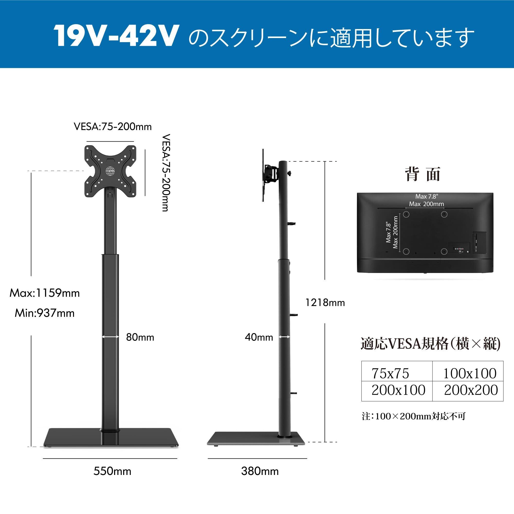 FITUEYES テレビスタンド 19~42インチ対応 壁寄せテレビスタンド 高さ角度調節可能 TT104601GB