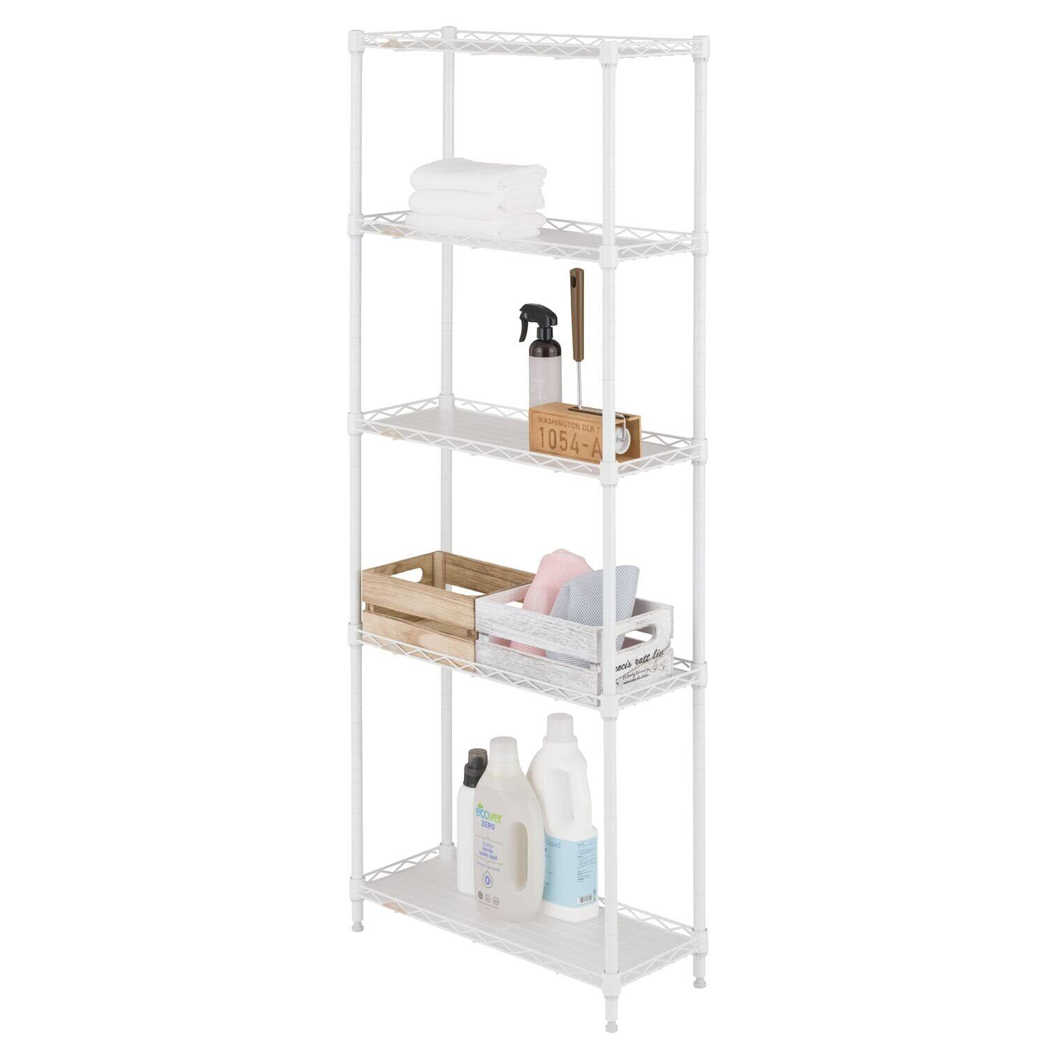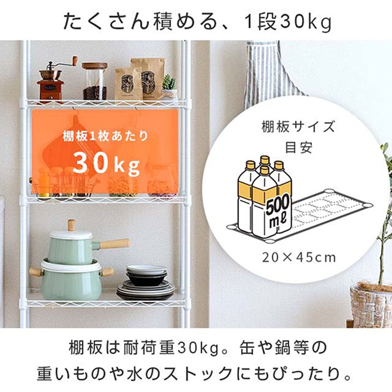ドウシシャ ルミナス ラテ 隙間収納ラック 幅25cm 奥行60 5段 ホワイト 白 おしゃれで可愛い スリムスチールラック 落下防止シート付き 全体耐荷重150kg 幅24.5×奥行59.5×高さ151.5cm キッチン収納 ポール径19mm LL2560-5WH | Bloomia