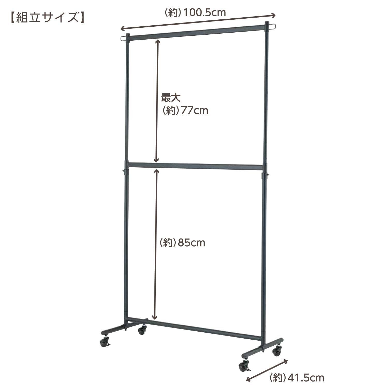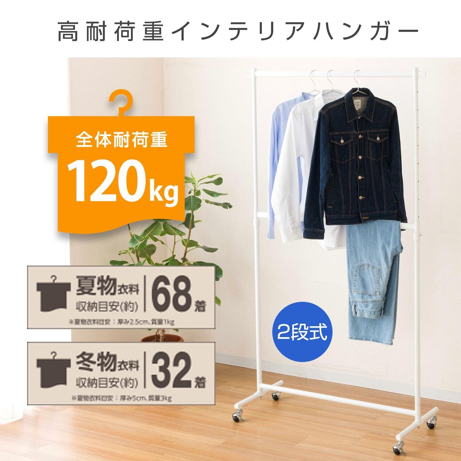 ドウシシャ ハンガーラック 2段式パイプハンガー 幅100cm 耐荷重120kg 頑丈 白 ホワイト おしゃれ 可愛い LIH2-100WH 幅100×奥行42×高さ117~183.5cm 上下2段でたっぷり収納 キャスター付き 高さ調整可能 洋服掛け 業務用 大容量