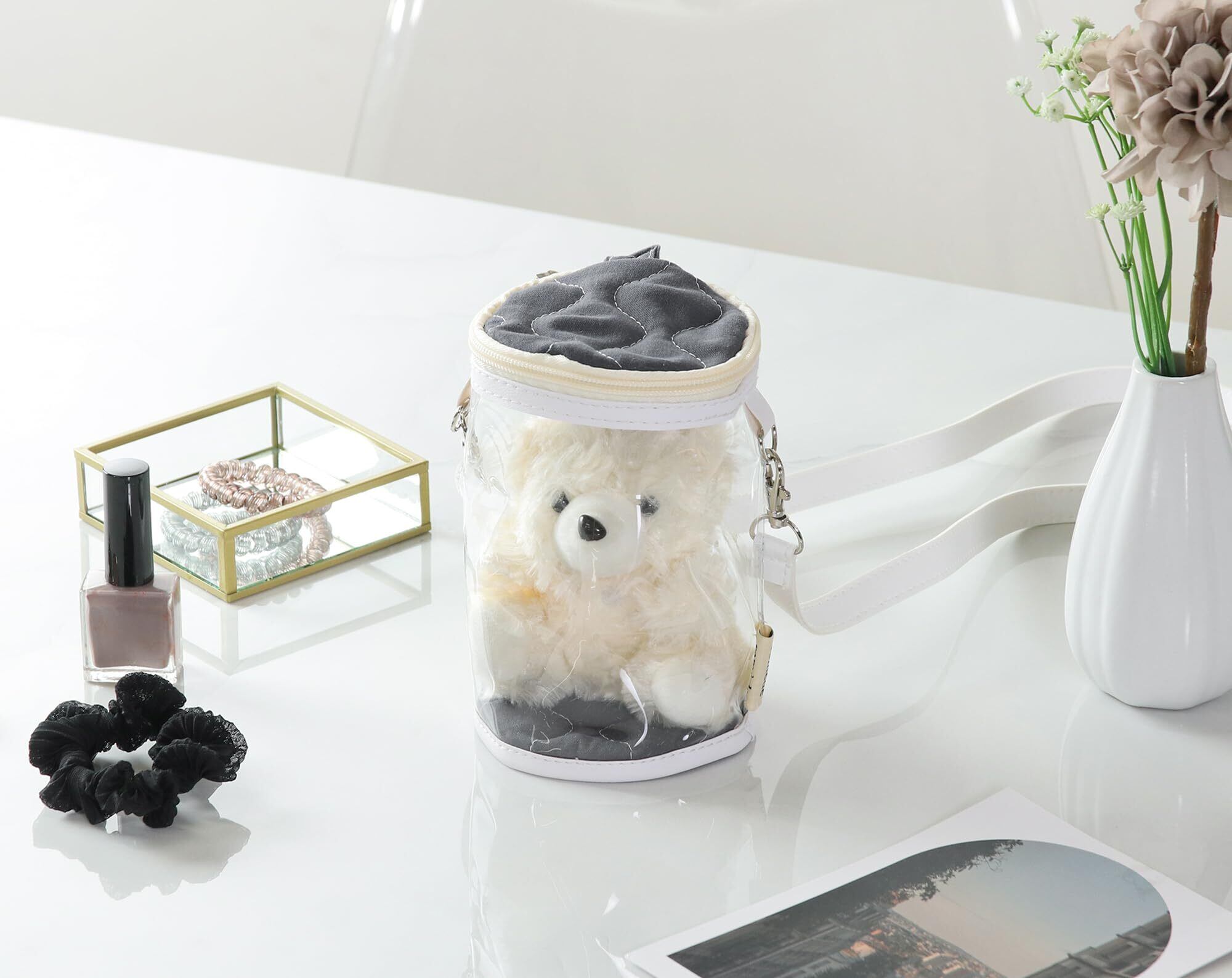 推しと一緒にお出かけできるショルダー掛け可能なぬいぐるみクリアバッグです。