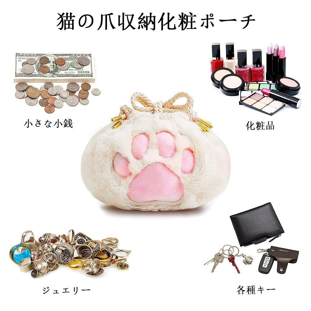 ねこコスメポーチ肉球巾着コスメボックス化粧品収納化粧ポーチメイクポーチ ポーチかわいいメイクポーチ大容量コンパクトサイズ収納ポーチ持ち運びたっぷり収納 旅行 出勤 出張 小物ポーチ メイクボックス (ホワイト)