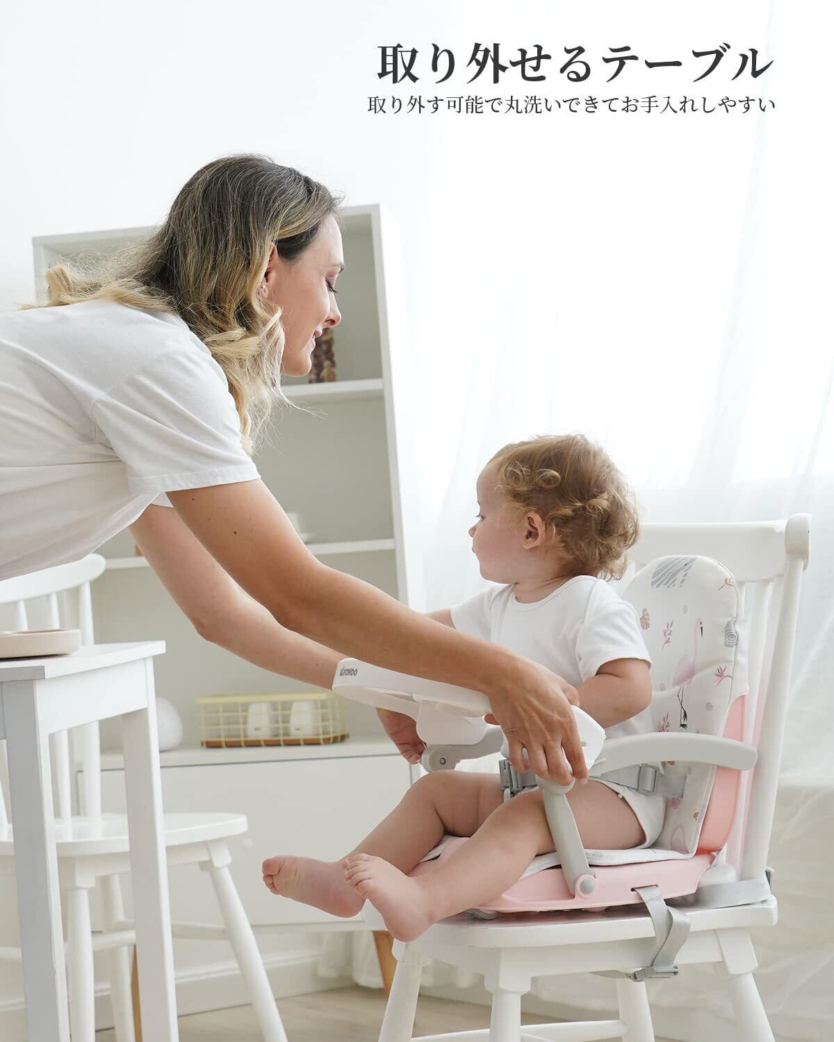 「ママにやさしい」本ベビーチェアはテーブルを取り外すことが可能で、丸洗いできてお手入れ簡単です。3点式安全ベルトで子どもの体をしっかりホールドできるため、ずり落ちにくく姿勢が安定しやすい。水切れが良く、耐久性にも優れている専用カバーは汚れがついてもさっと拭くだけで落ちます。