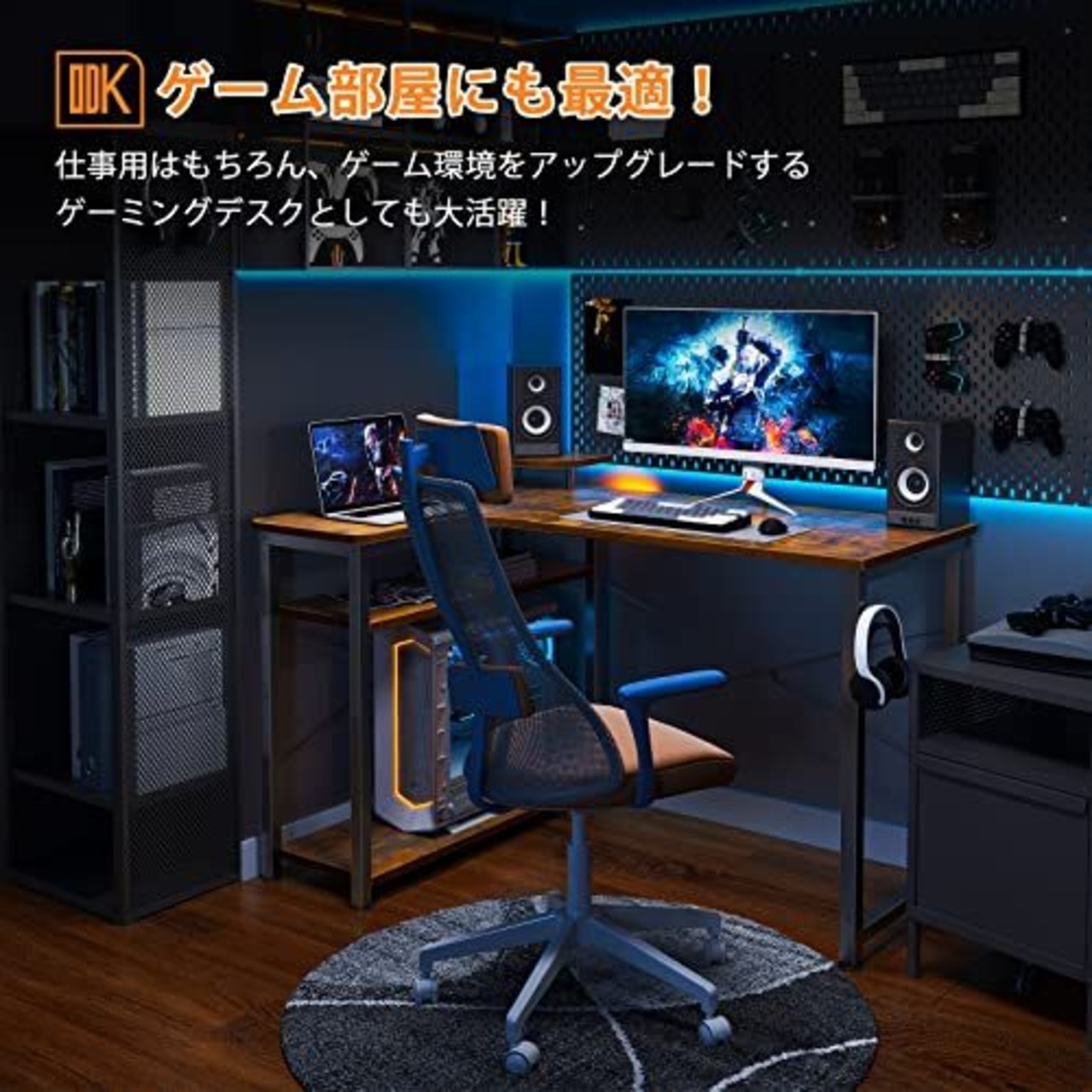 【ゲームと仕事両立】L字ゲーミングデスクは実用性が高く、ゲームプレイ、在宅勤務、書斎机、勉強机など様々なシーンで大活躍!モニター台を利用して目線をあげることで、作業時の姿勢を改善し、テレワークが快適になり、作業効率も格段に上がります。