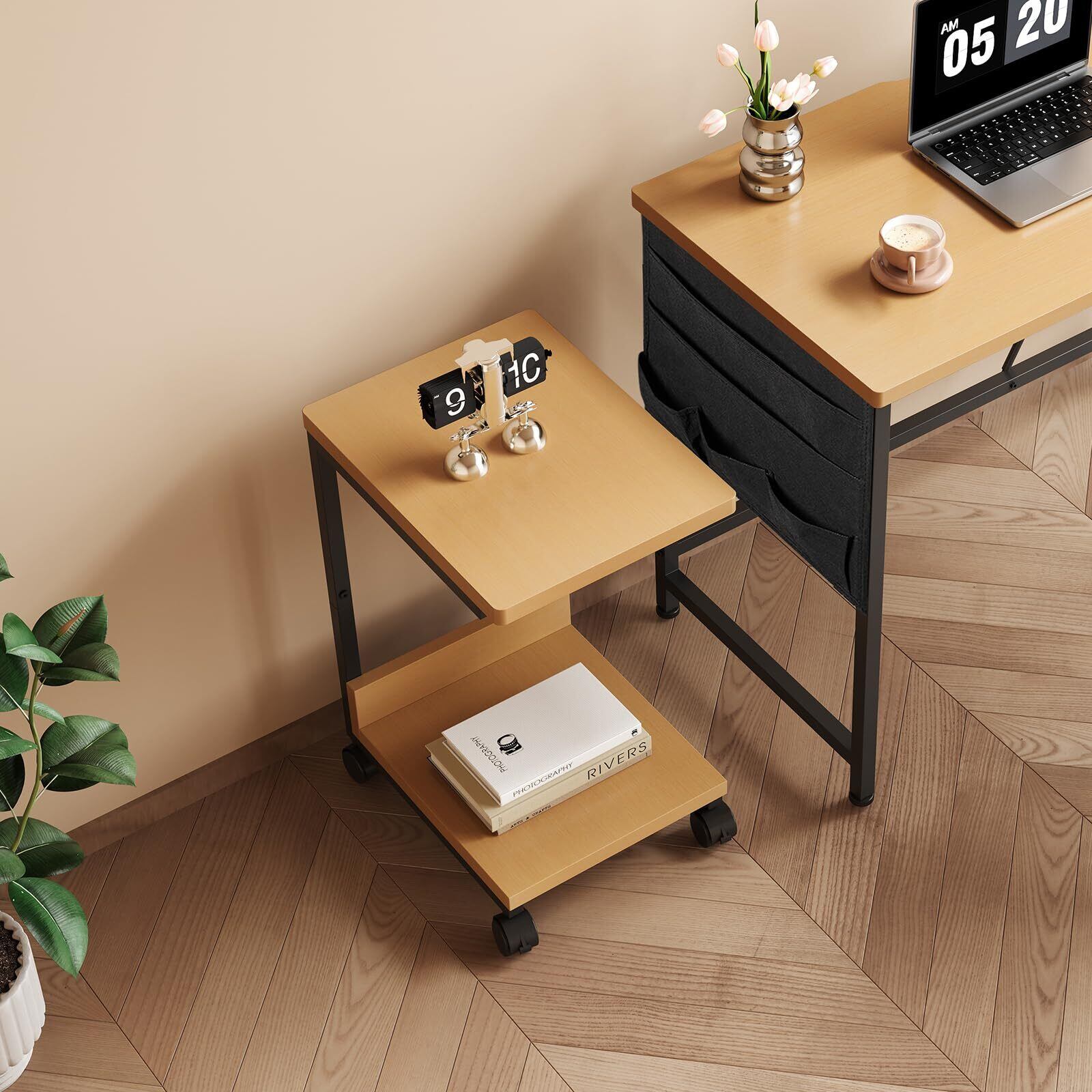 YeTom サイドテーブル キャスター付き ベッドサイドテーブル 可移動ベッドテーブル サイドワゴン コの字 テーブル 層幅37×奥行26×高さ53cm(キャスター付き)ナチュラル | Bloomia