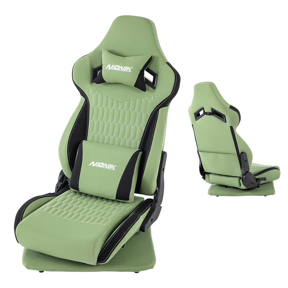 NIONIK ゲーミングチェア 座椅子 ゲーミング座椅子 180°リクライニング ファブリック 回転座椅子 ひじ掛けなし ゲームチェア ランバーサポート 360° 回転座面 ハイバック グリーン | Bloomia