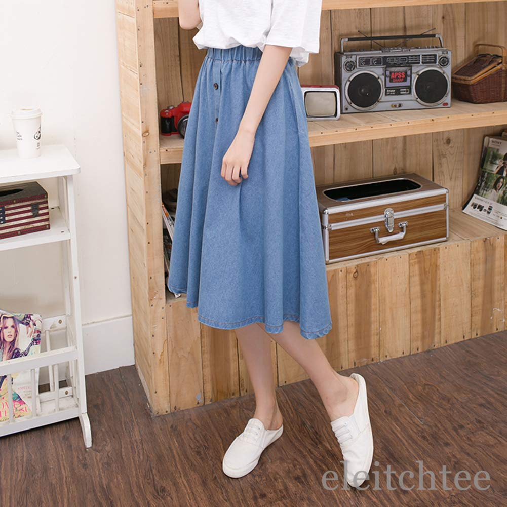 [eleitchtee] [LHT]デニムスカート レディース ウエストゴム フレア aライン ミモレ丈 体型カバー ゆったり カジュアル 通勤 通学