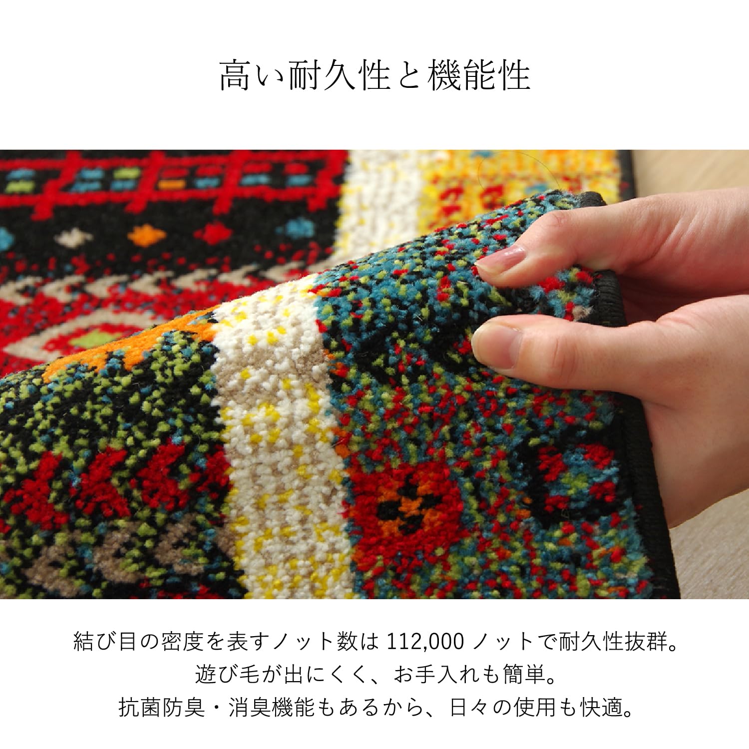 【丈夫で長く使える】パイルの密度も高く高密度で遊び毛も出にくく、丈夫で長くご使用頂けます。パイル部分のポリプロピレンは耐久性に優れ、繊維の中でも軽い素材です。
