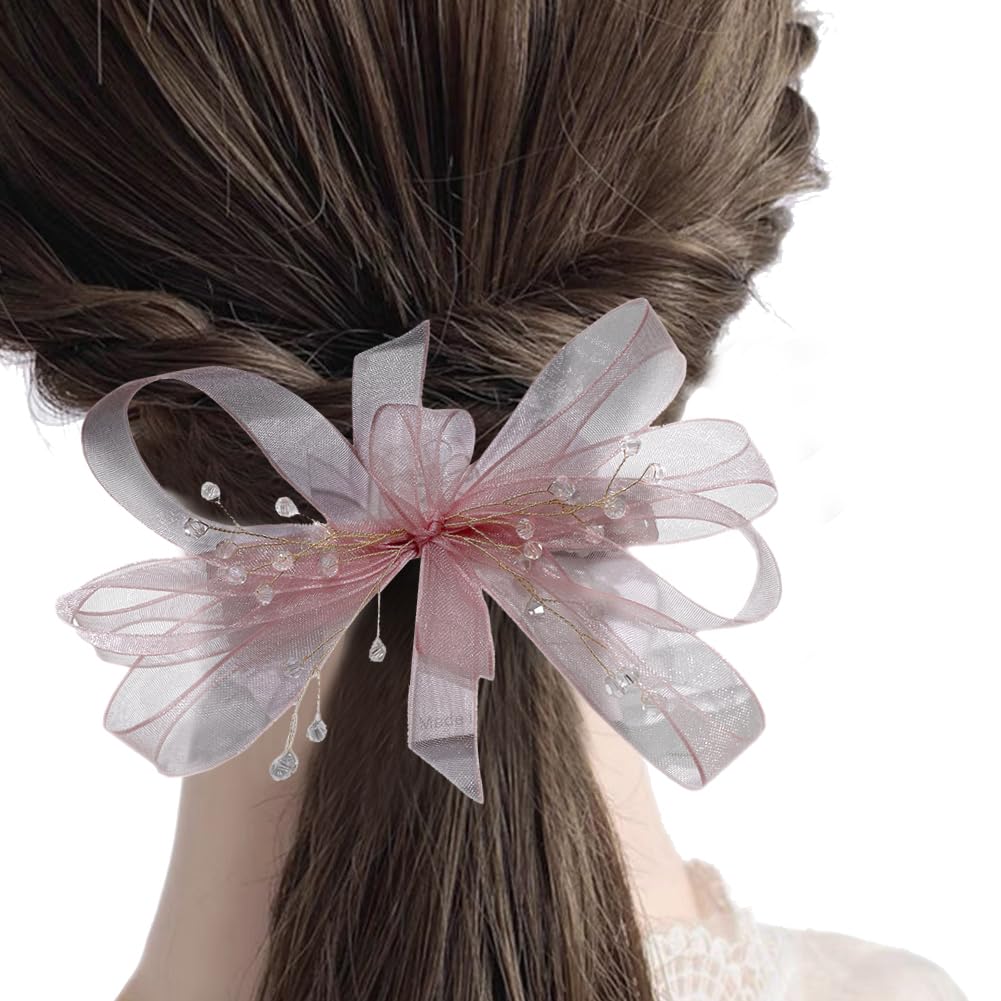 FASELE ヘアクリップ 髪飾り チュールリボン ヘアアクセサリー 森ガール 女性 子供 誕生日 発表会 撮影用 結婚式 フォーマル 通勤 通学 パーティー 1PC