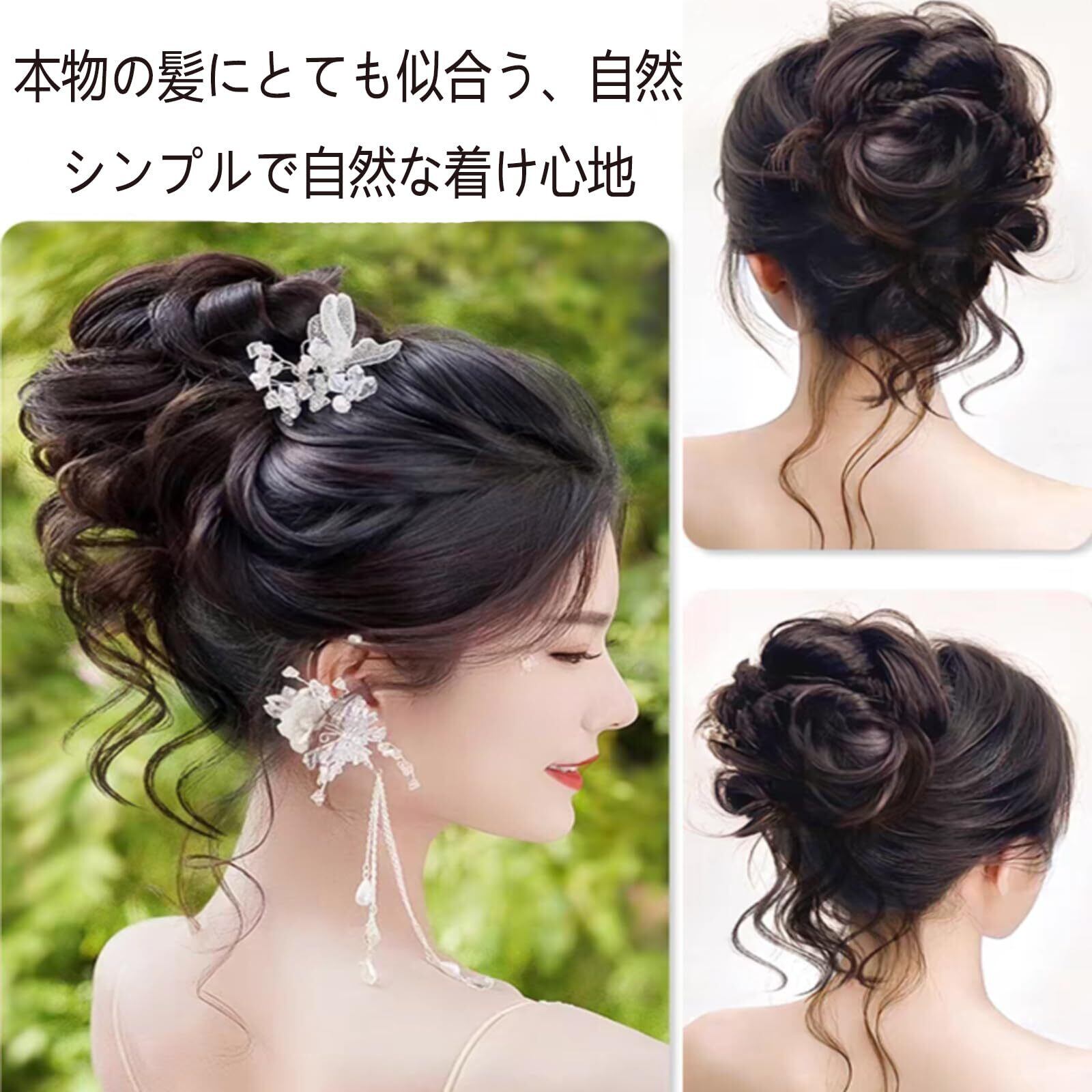 HAPVITAL お団子 ポイントウィ ウィッグ 和装 シニヨン 部分 ウィッグ つけ毛 髪飾り ボリュームアップ 簡単 自然 感 ピッタリな髪型 おしゃれ 人気 レディース (ブラック, ィッグ エアリー カール)